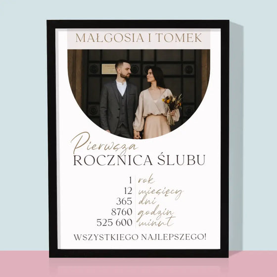 62,99 zł69,99 złCena jednostkowa /NiedostępneZdjęcie I Podpis: Pierwsza Rocznica Ślubu - Wydruk obramowany - Pion
