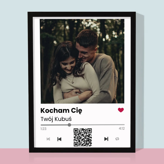 - Zdjęcie i Podpis: Spotify z Kodem Qr - Wydruk obramowany - Pion 99,99 złCena jednostkowa /Niedostępne