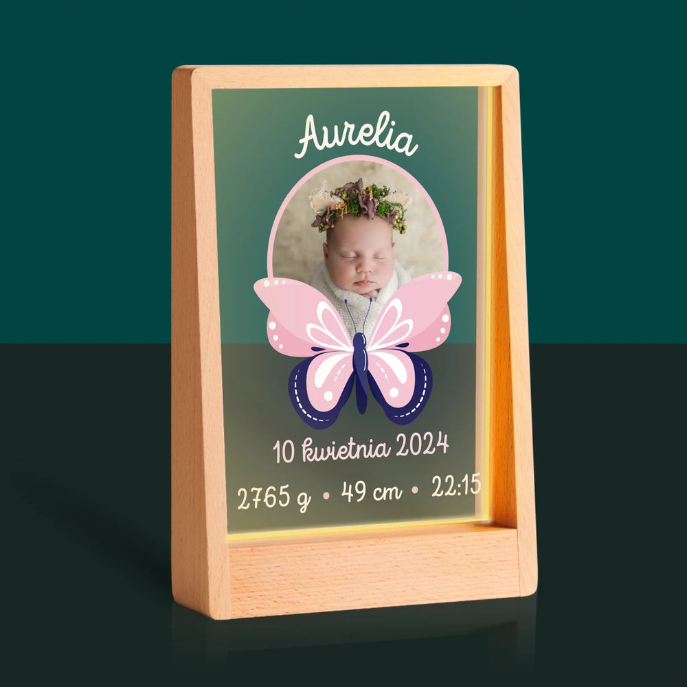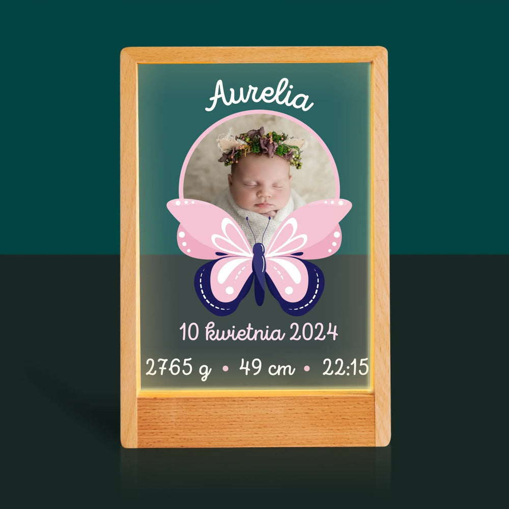 Metryczka Dziecka: Motylek - Wydruk na szkle akrylowym