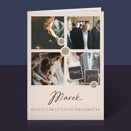 26,99 zł29,99 złCena jednostkowa /NiedostępneFotokolaż: Dziękuję! Dla Świadka - Kartka z życzeniami