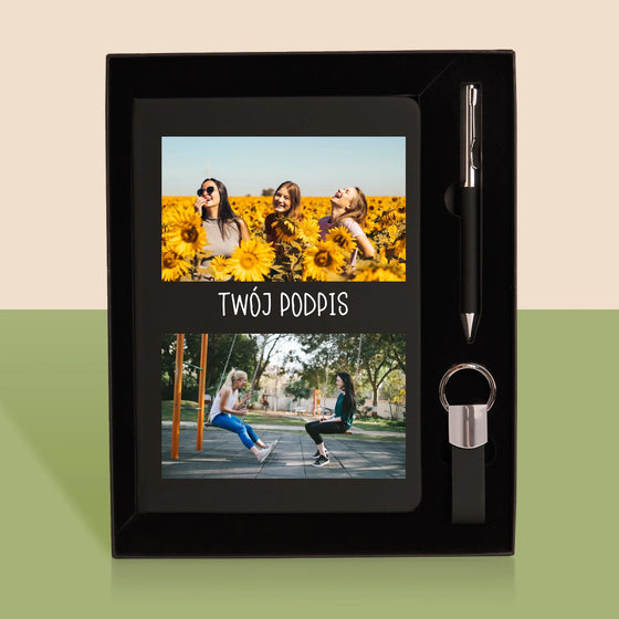 109,99 złCena jednostkowa /NiedostępneFotokolaż: 2 Zdjęcia i Podpis - Zestaw z Notatnikiem