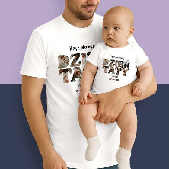 - Słowo Ze Zdjęć: Nasz Pierwszy Dzień Taty - Zestaw koszulka męska + body 99,99 złCena jednostkowa /Niedostępne