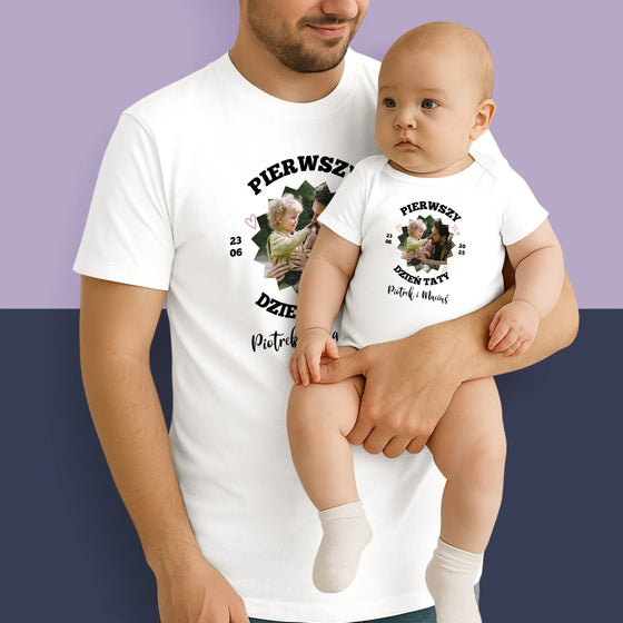 - Imię i Podpis: Pierwszy Wspólny Dzień Taty - Zestaw koszulka męska + body 99,99 złCena jednostkowa /Niedostępne