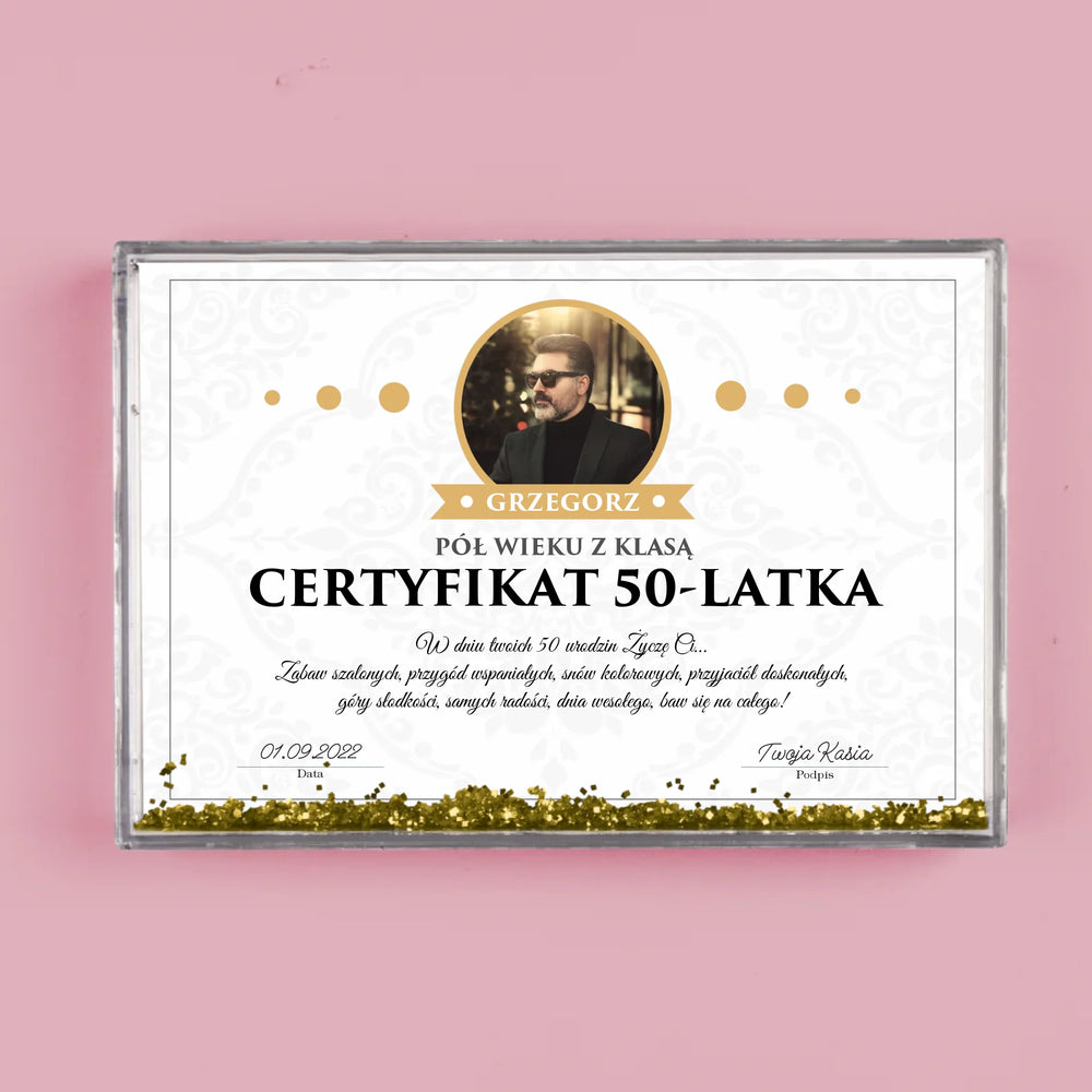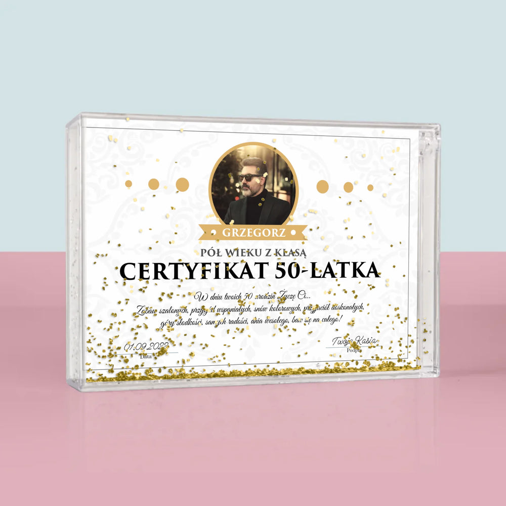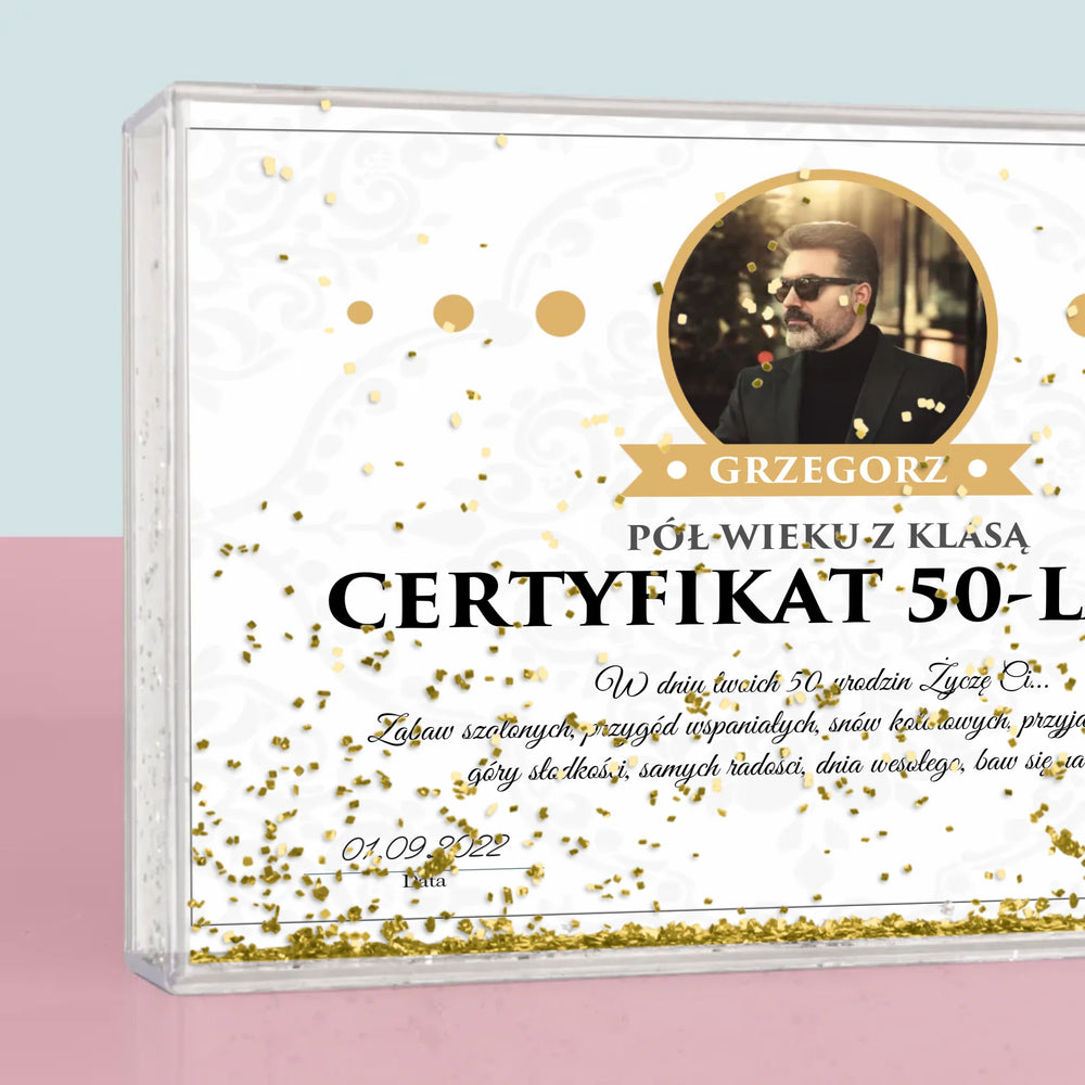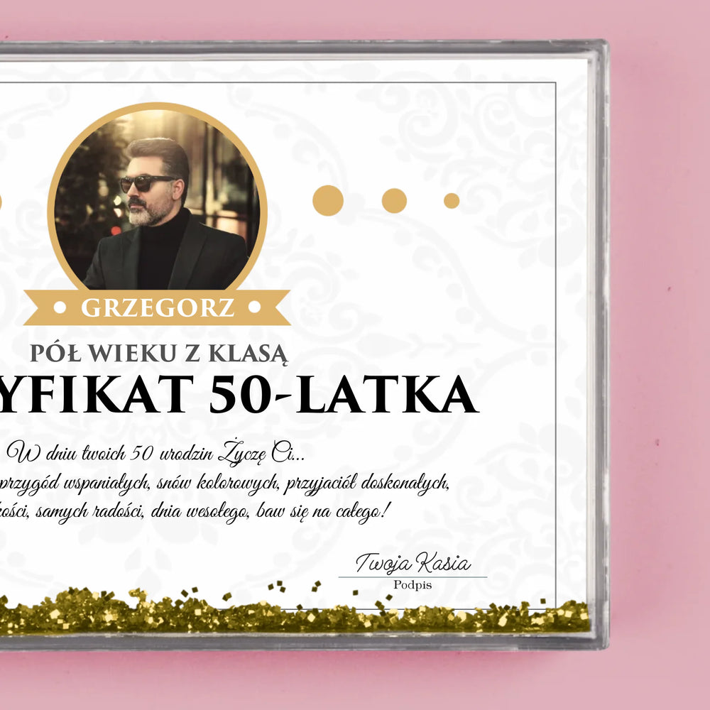 Certyfkat: Certyfikat 50-Latka - Personalizowana Ramka Wodna