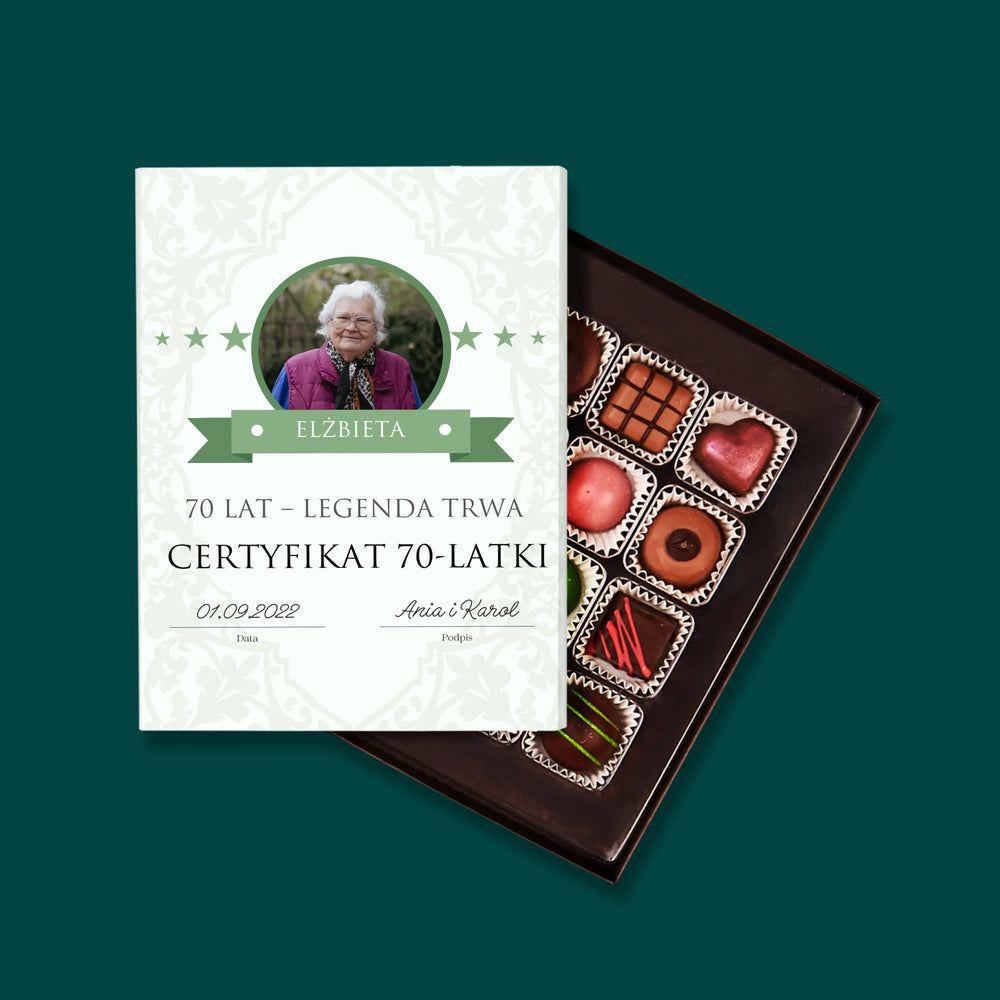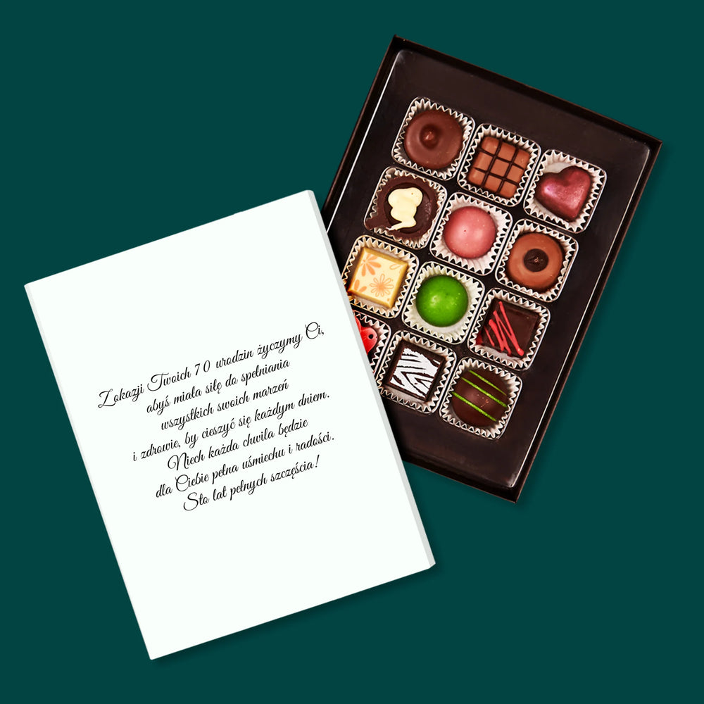 Pyszne praliny z belgijskiej czekolady w eleganckim pudełku z wybraną przez Ciebie personalizacją.