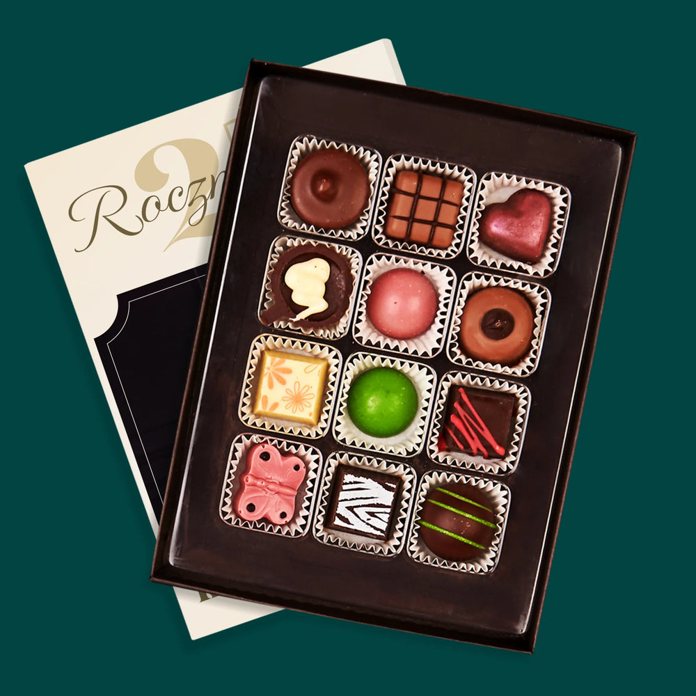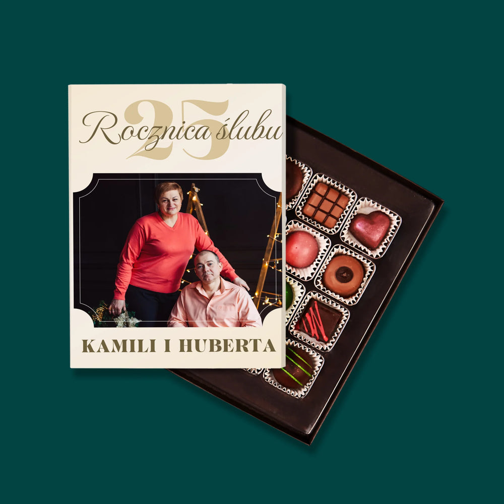Pyszne praliny z belgijskiej czekolady w eleganckim pudełku z wybraną przez Ciebie personalizacją.