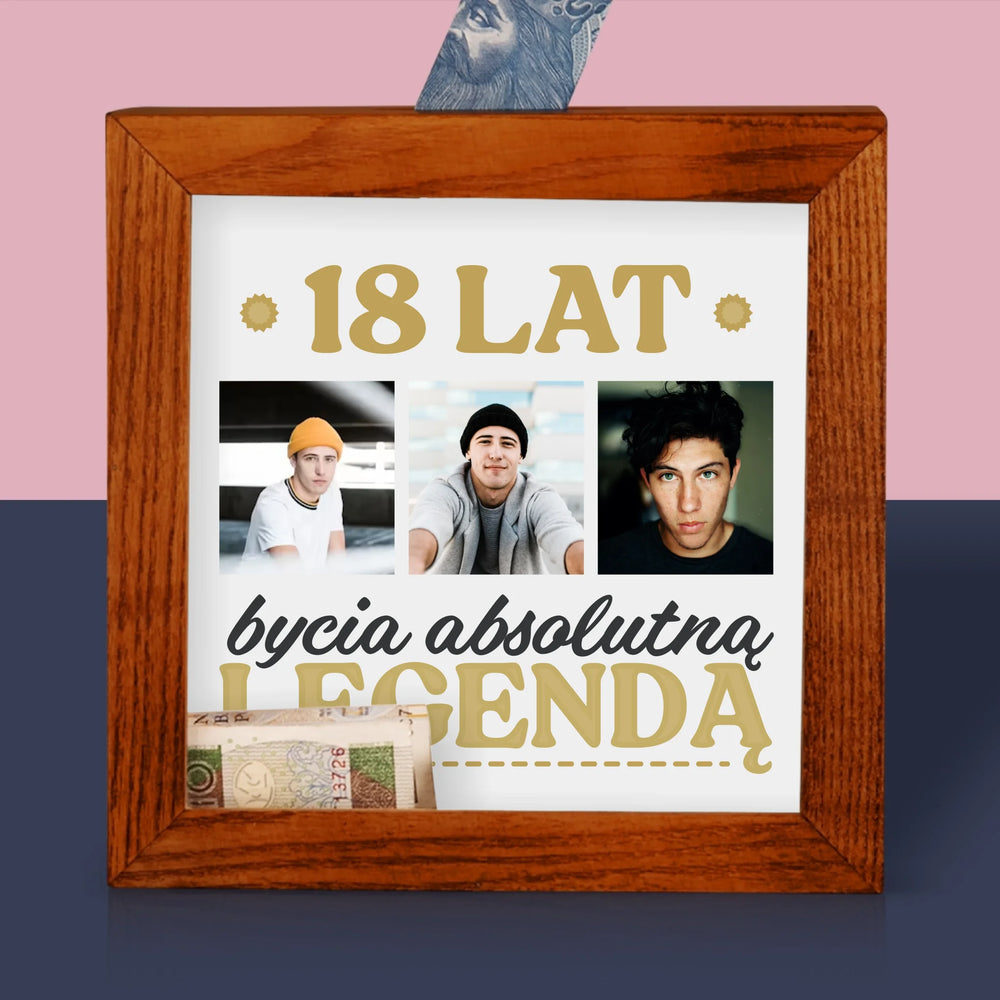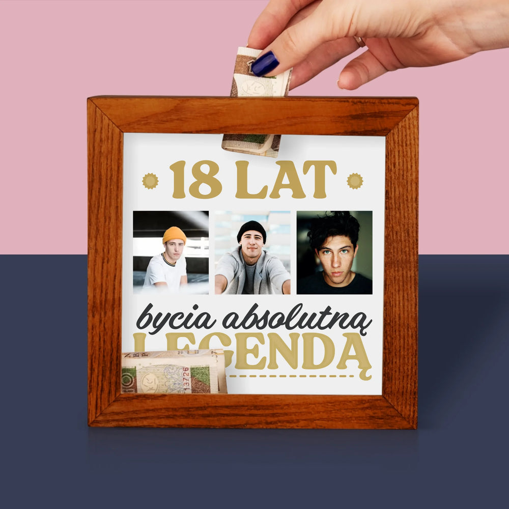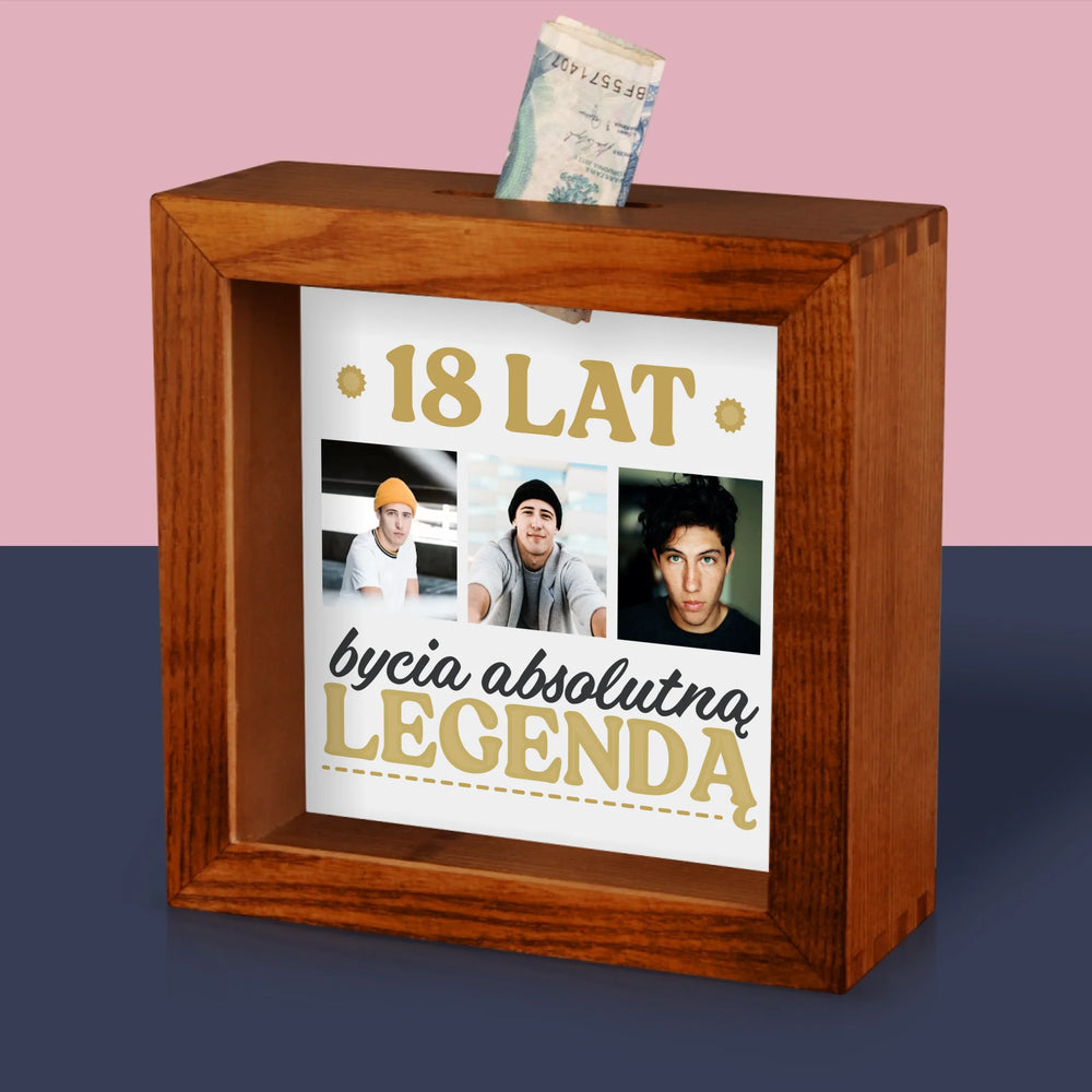 Fotokolaż: 18 Lat Bycia Legendą - Drewniana skarbonka