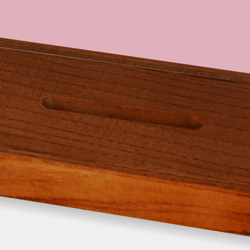 Wykonana z bejcowanego i lakierowanego drewna jesionowego.