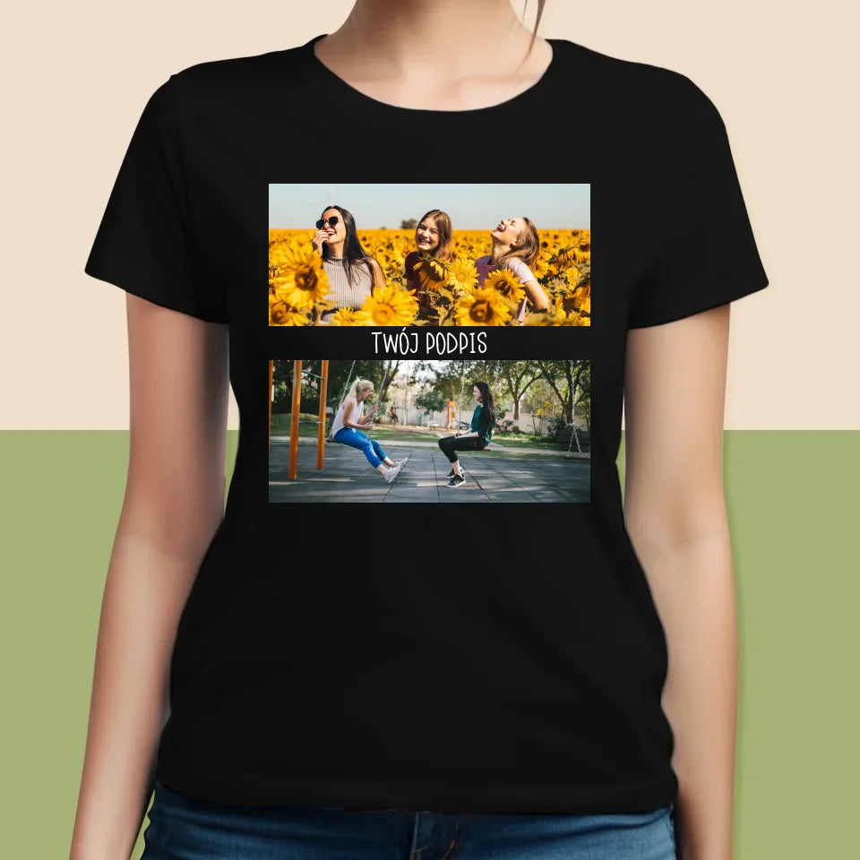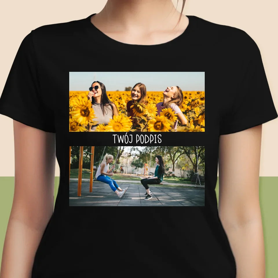 Fotokolaż: 2 Zdjęcia i Podpis - Personalizowana Koszulka Damska