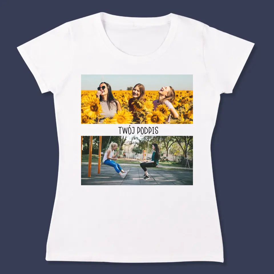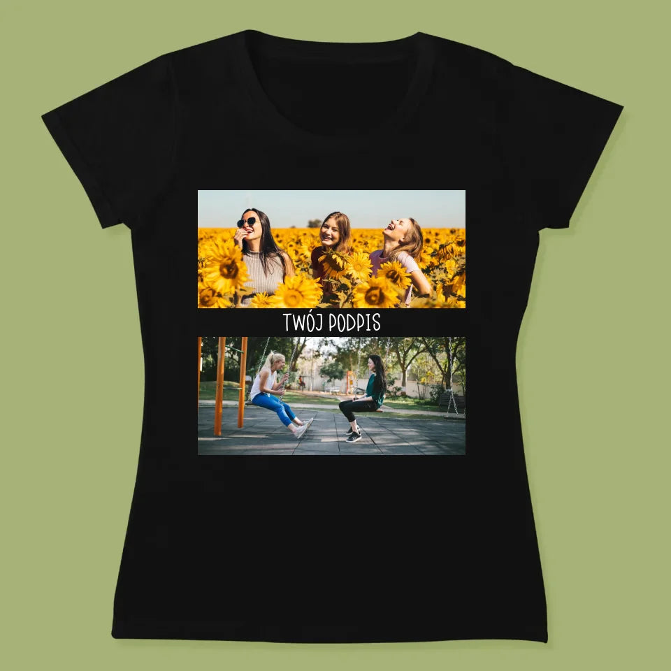 Fotokolaż: 2 Zdjęcia i Podpis - Personalizowana Koszulka Damska