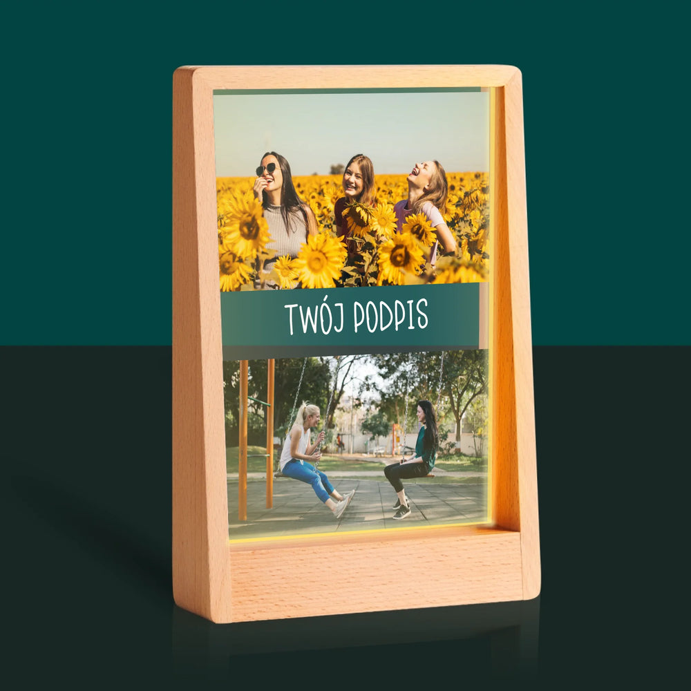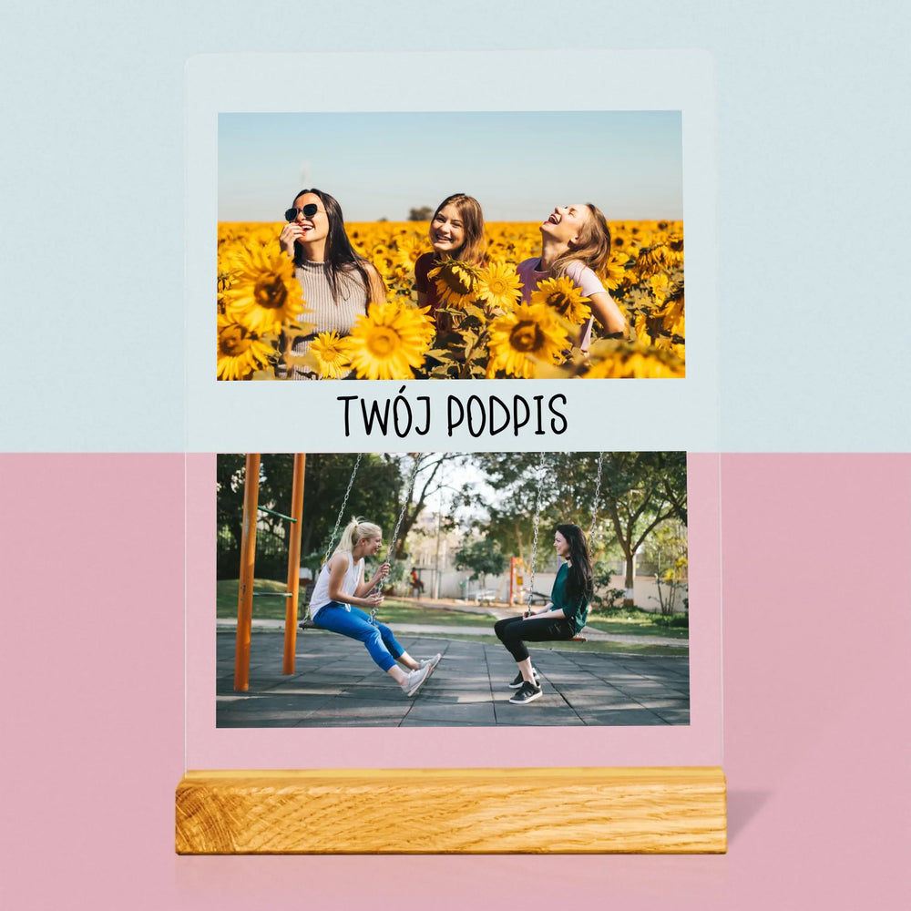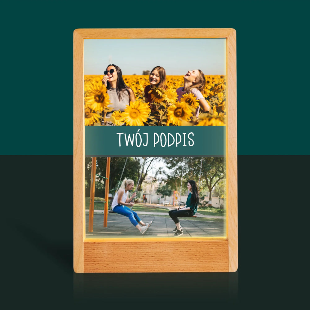 Fotokolaż: 2 Zdjęcia i Podpis - Wydruk na szkle akrylowym w ramce LED