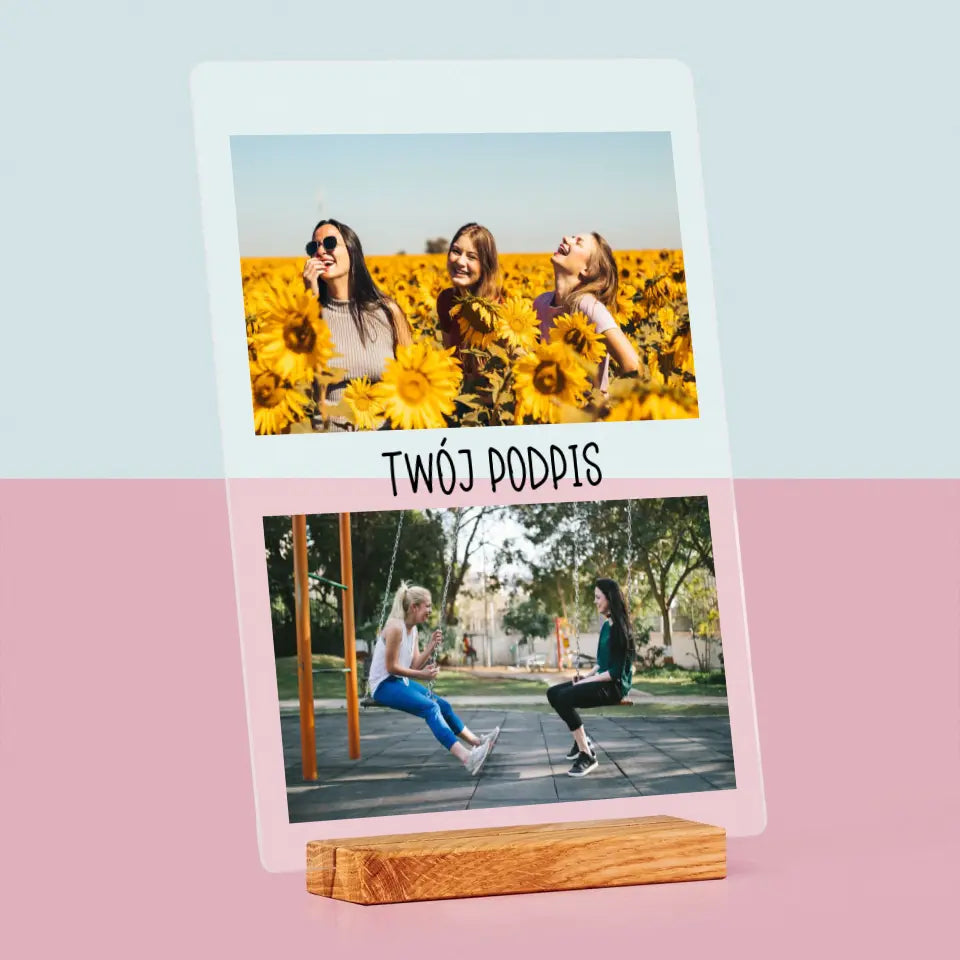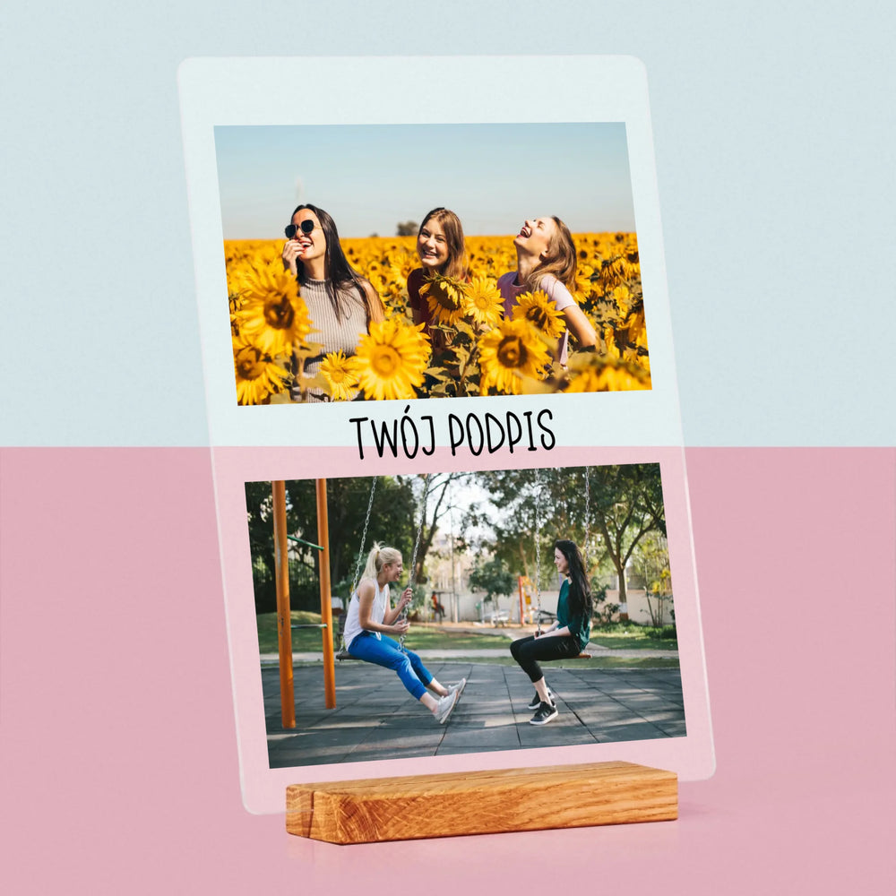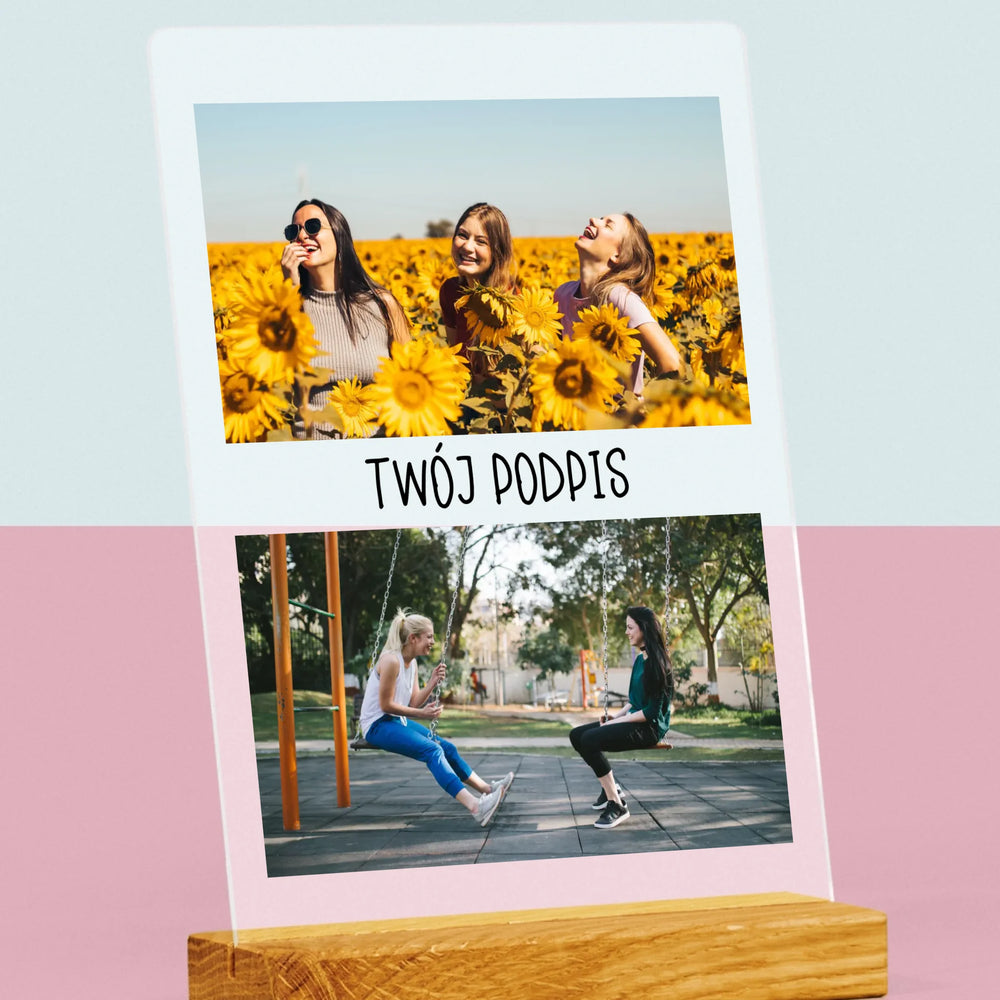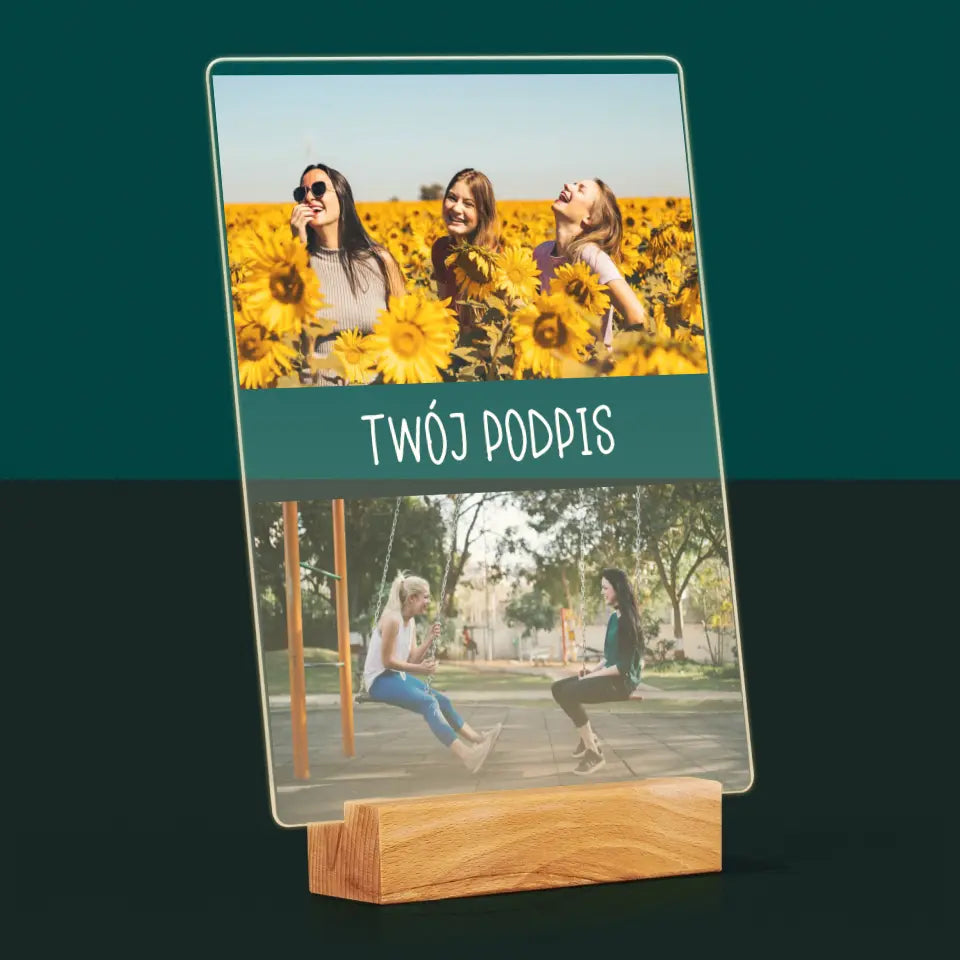 Fotokolaż: 2 Zdjęcia i Podpis - Wydruk na szkle akrylowym w ramce LED