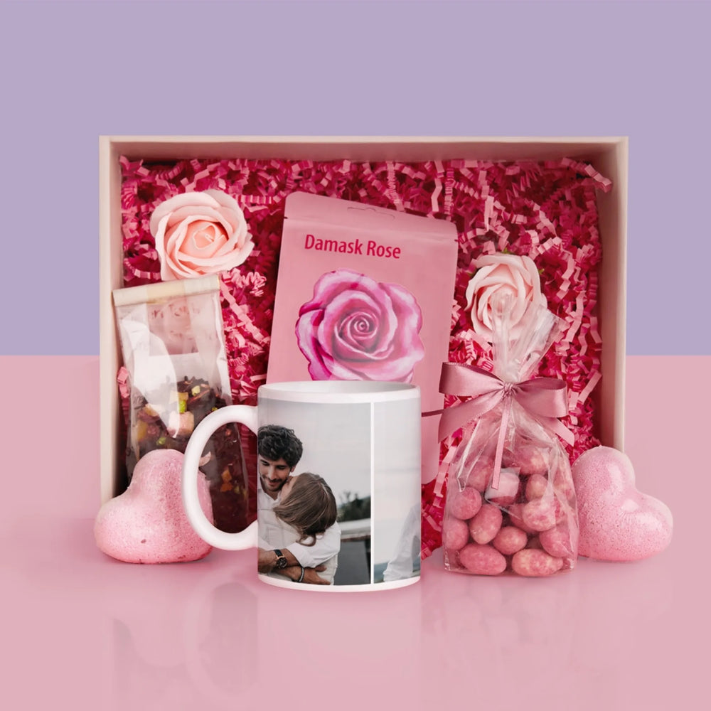 Fotokolaż: 2 Zdjęcia - Zestaw prezentowy z kubkiem i różanym spa