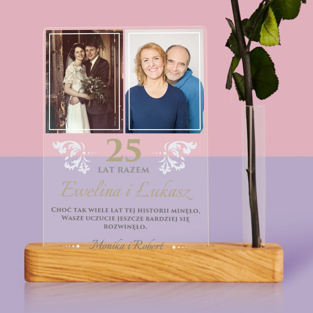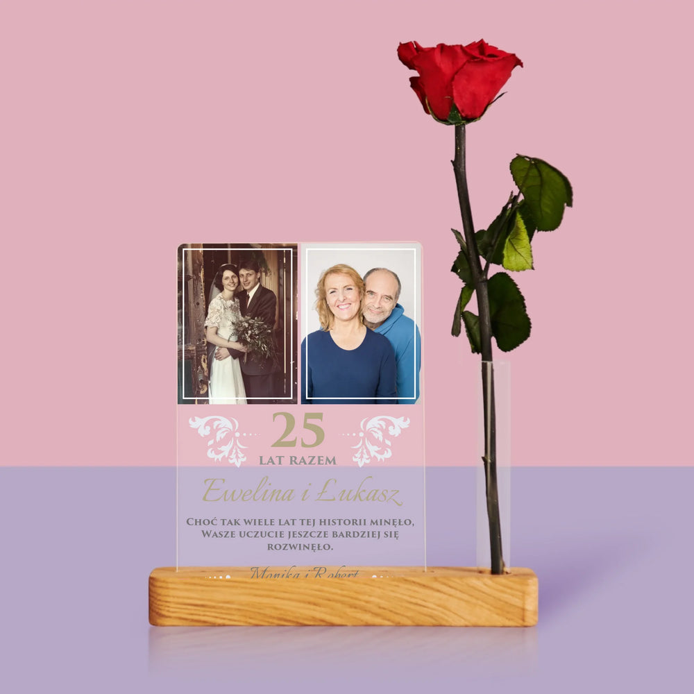 Fotokolaż: 25 Lat Razem - Wydruk na szkle akrylowym z różą