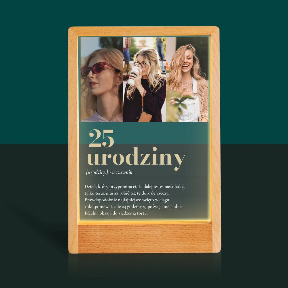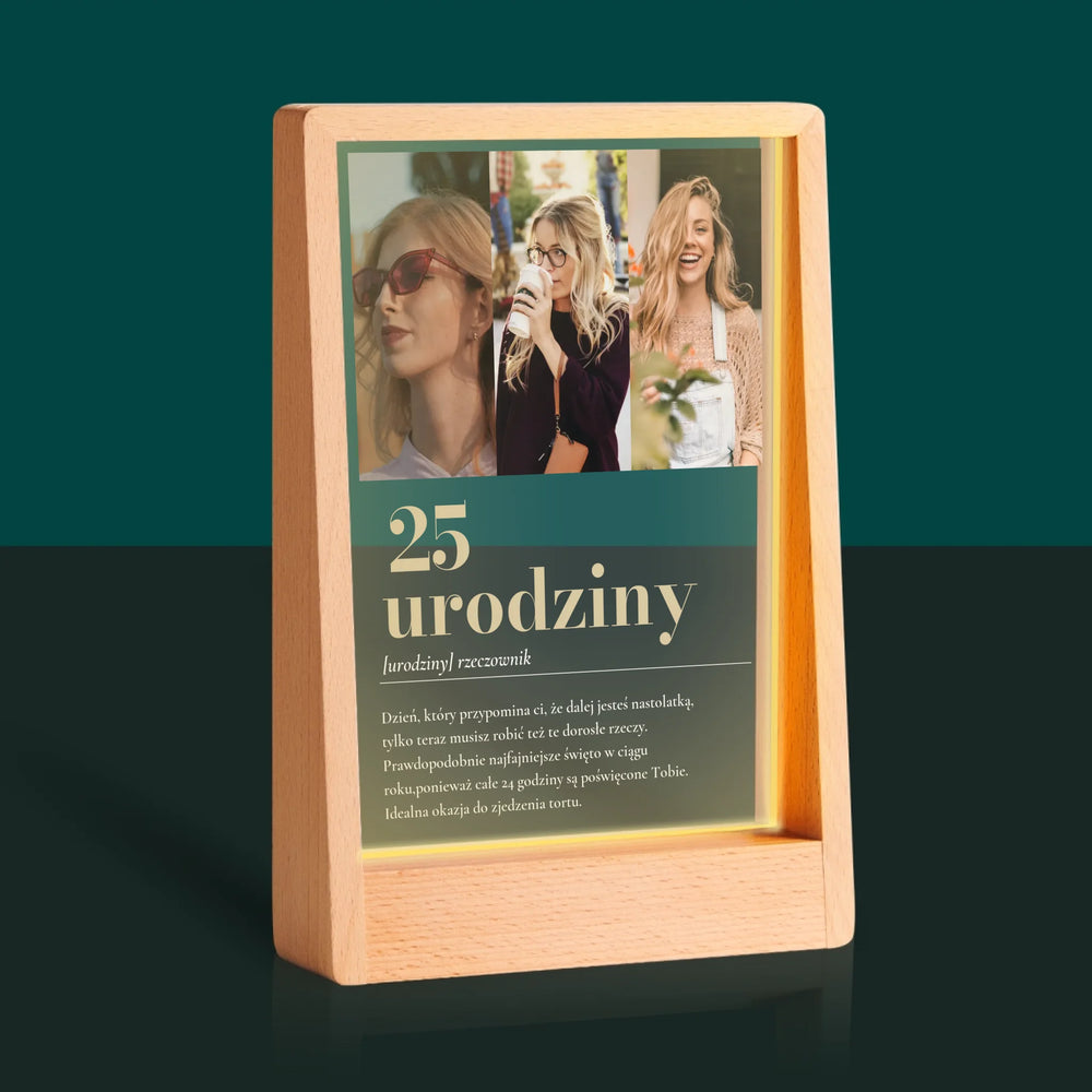 Fotokolaż: 25 Urodziny Definicja - Wydruk na szkle akrylowym LED