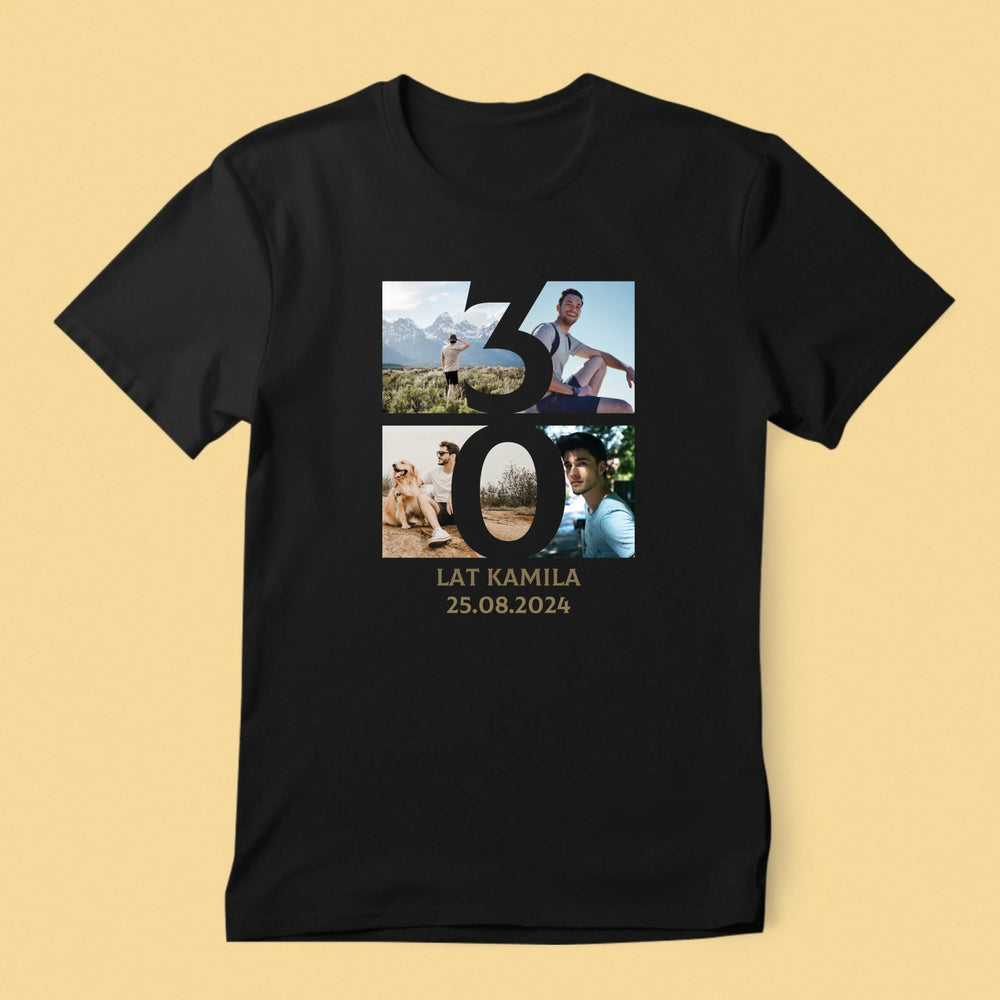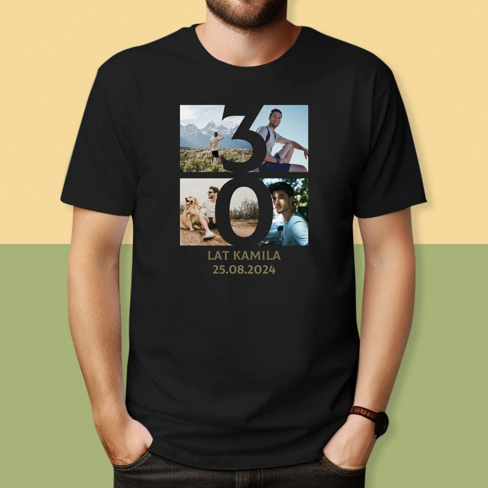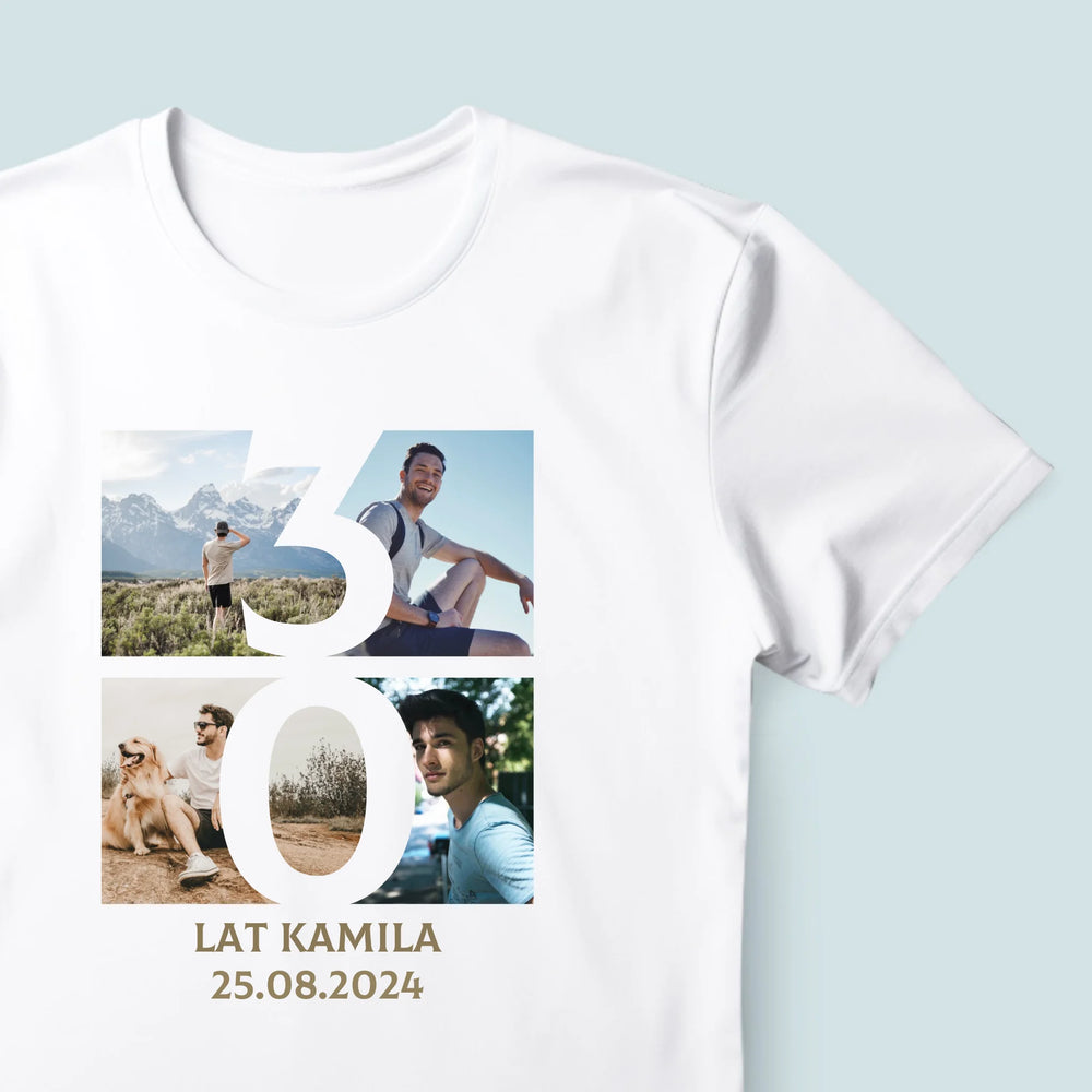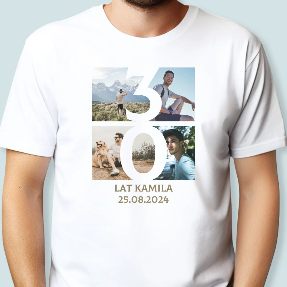 Fotokolaż: 30 Lat Cyfra Zdjęcia - Personalizowana Koszulka Męska