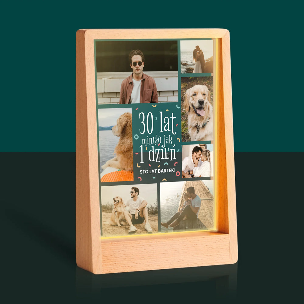 Fotokolaż: 30 Lat Minęło - Wydruk na szkle akrylowym w ramce LED