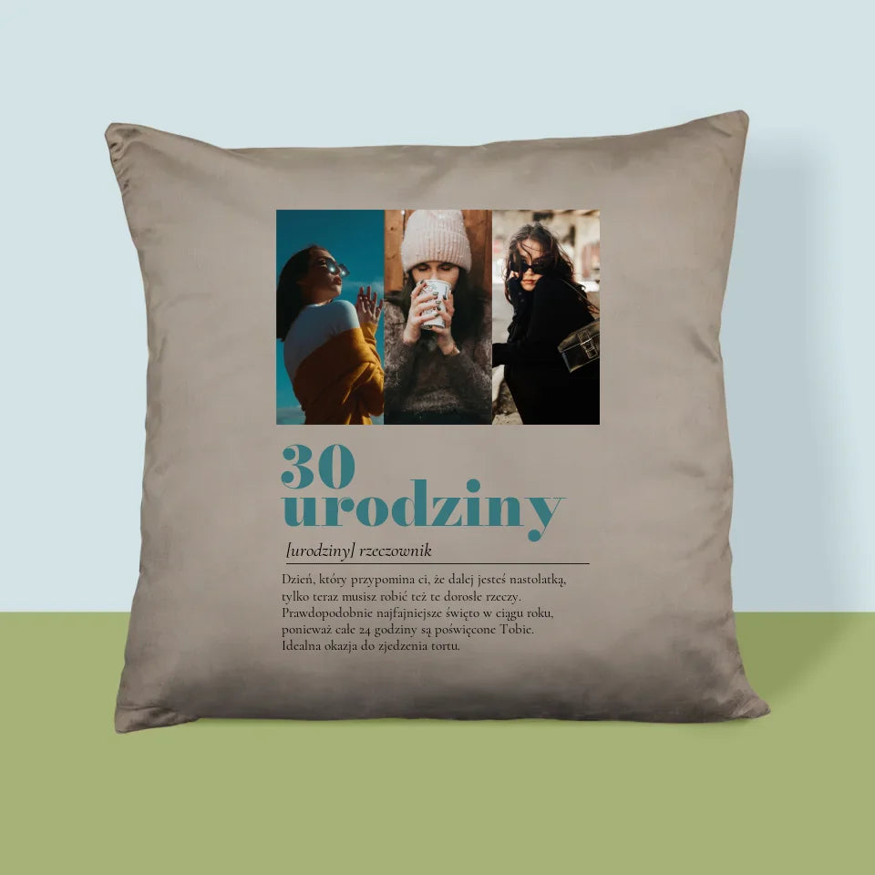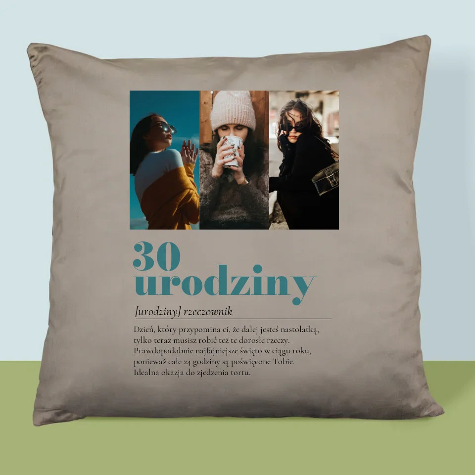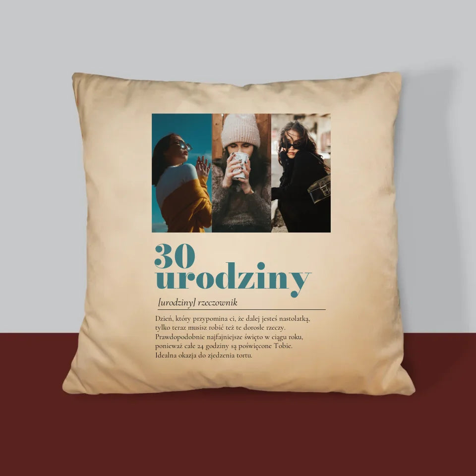 Fotokolaż: 30 Urodziny Definicja - Poduszka z Nadrukiem