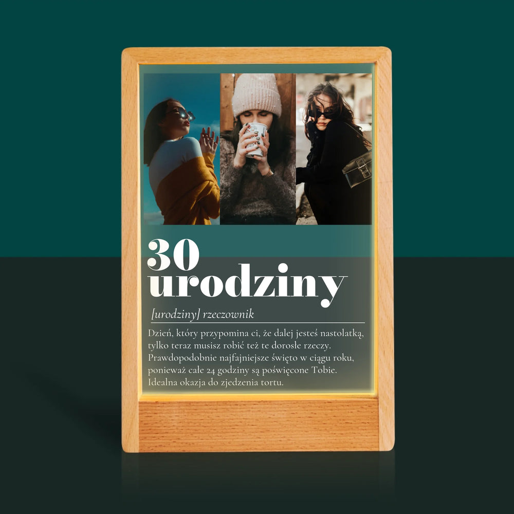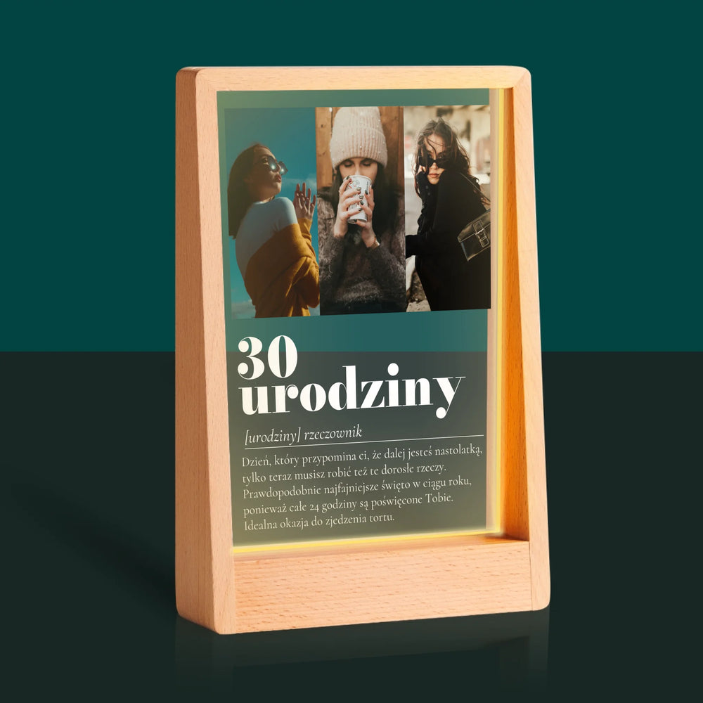 Fotokolaż: 30 Urodziny Definicja - Wydruk na szkle akrylowym w ramce LED