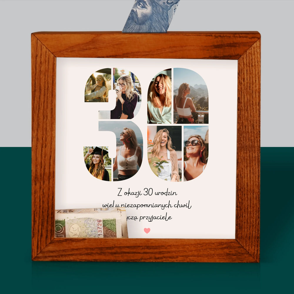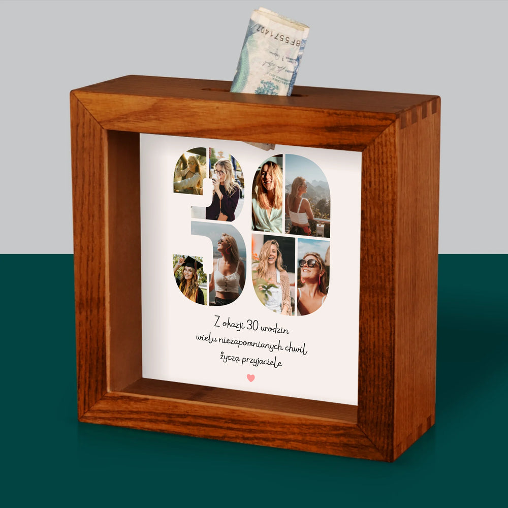 Fotokolaż: 30 Urodziny Życzenia - Drewniana skarbonka