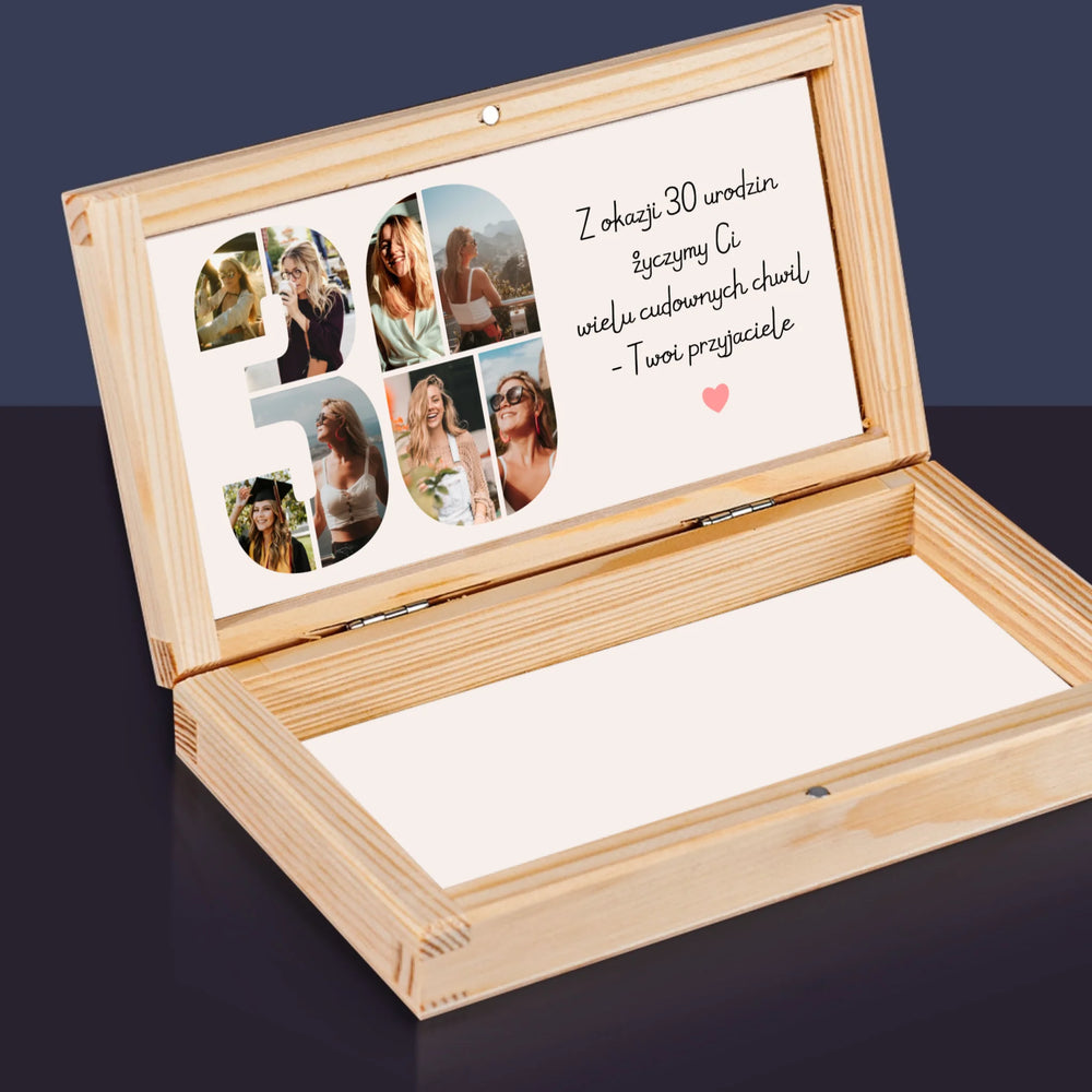 Fotokolaż: 30 Urodziny Życzenia - Drewniane pudełko na pieniądze