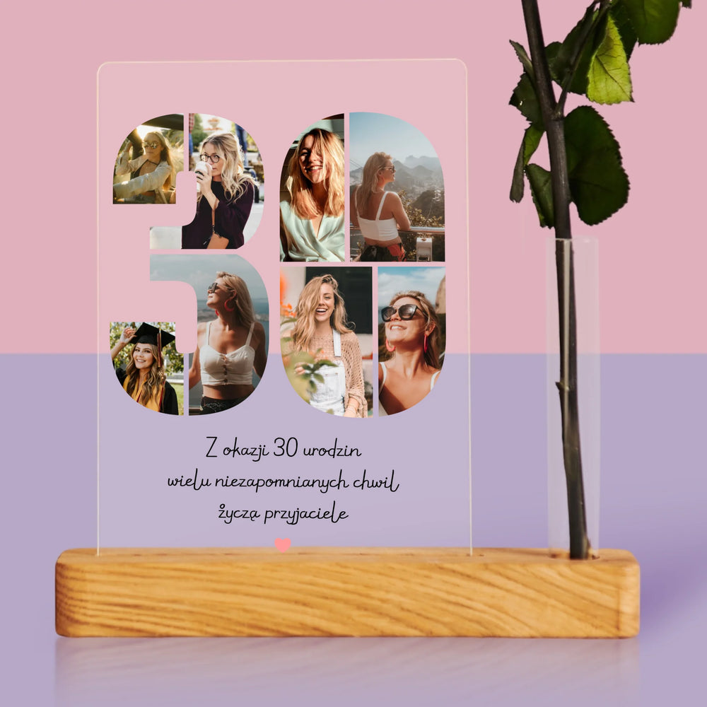 Fotokolaż: 30 Urodziny Życzenia - Wydruk na szkle akrylowym z różą