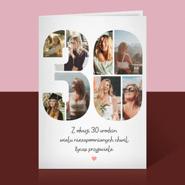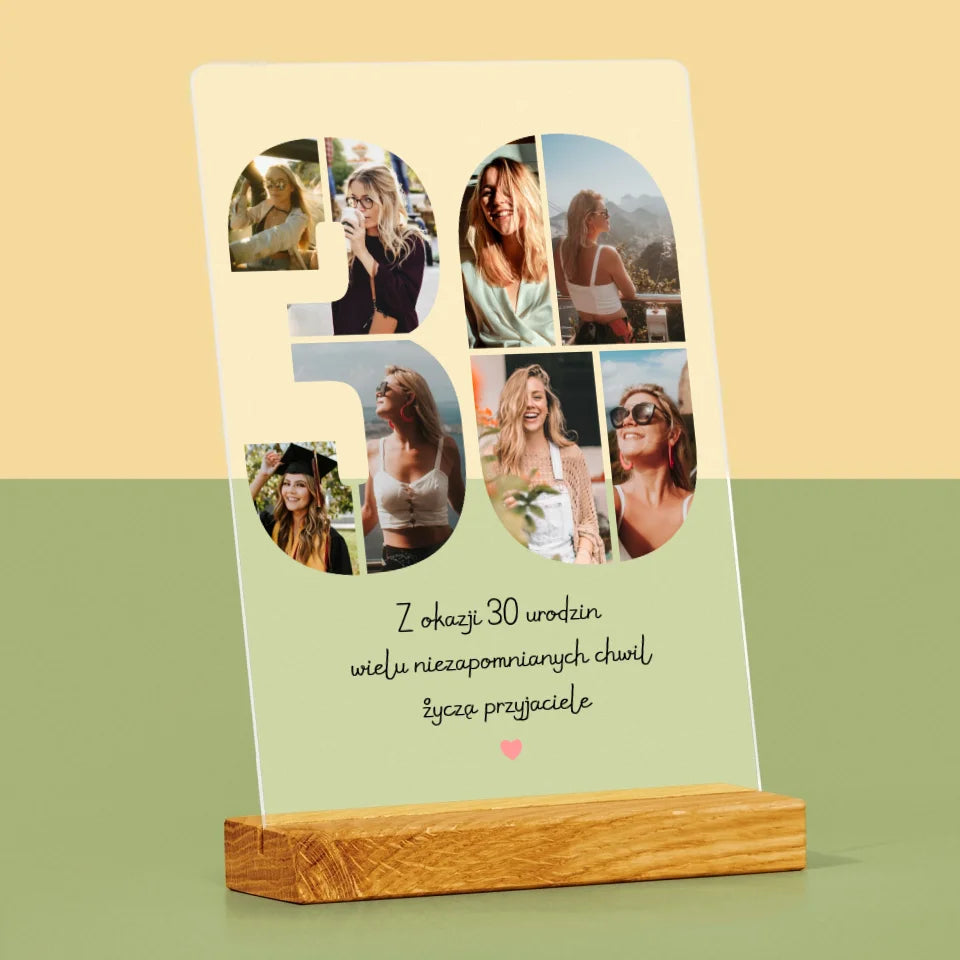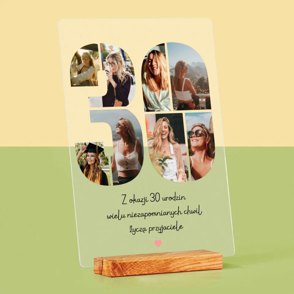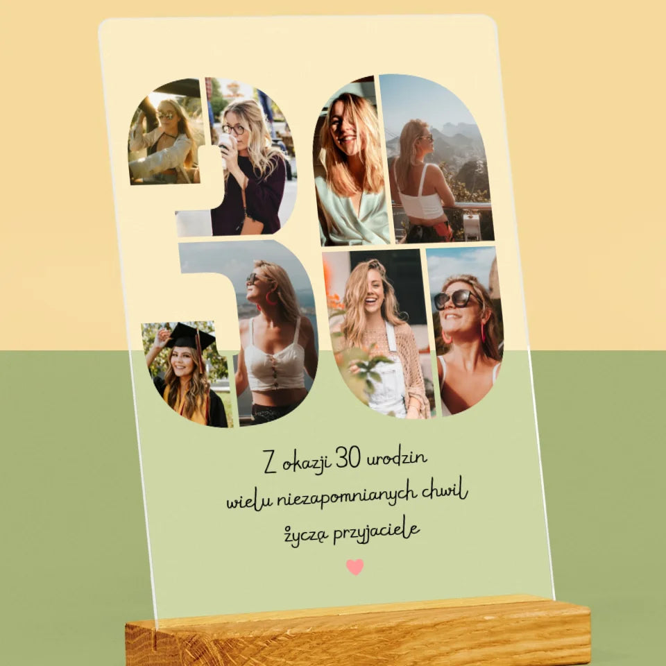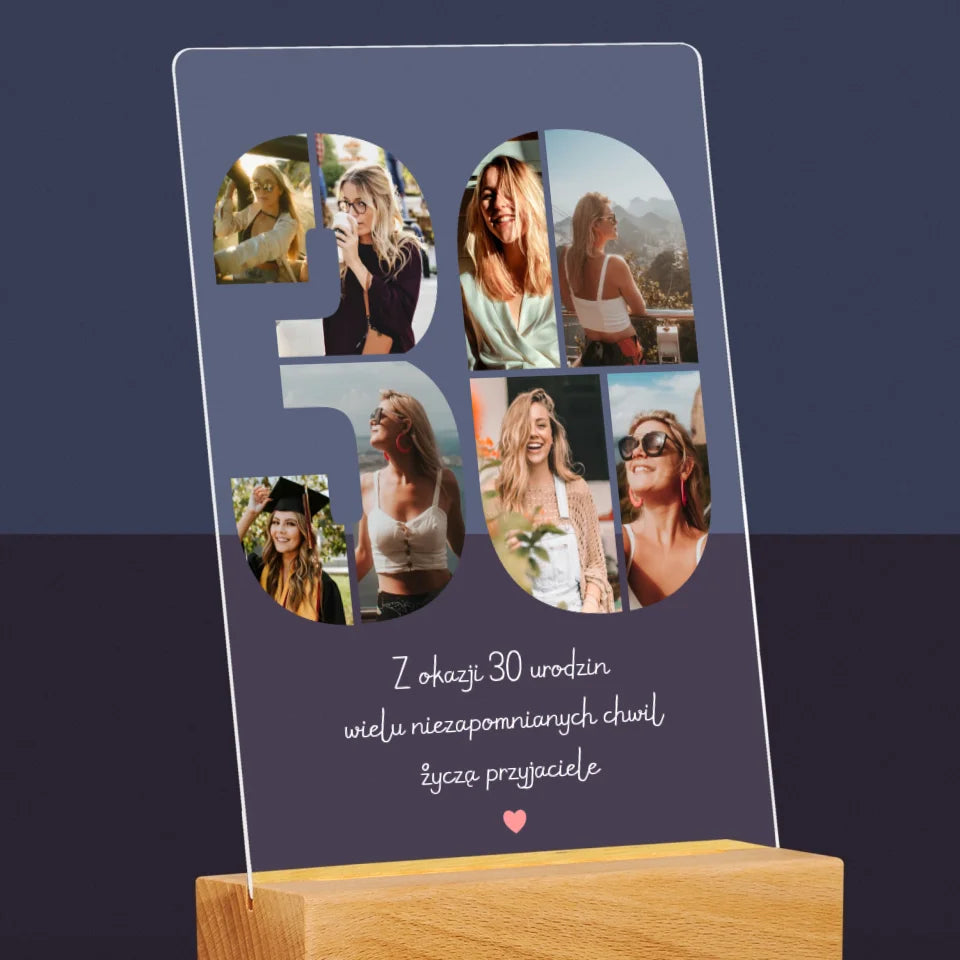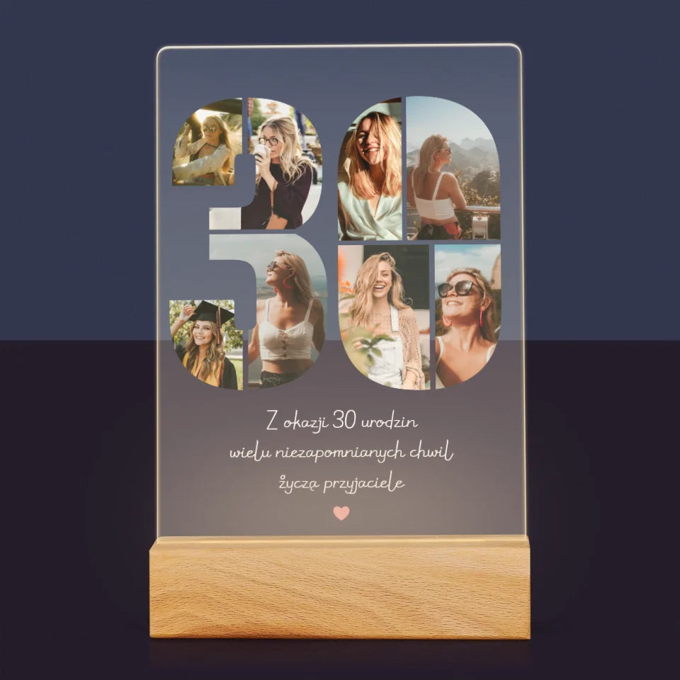 Fotokolaż: 30 Urodziny Życzenia - Wydruk na szkle akrylowym LED