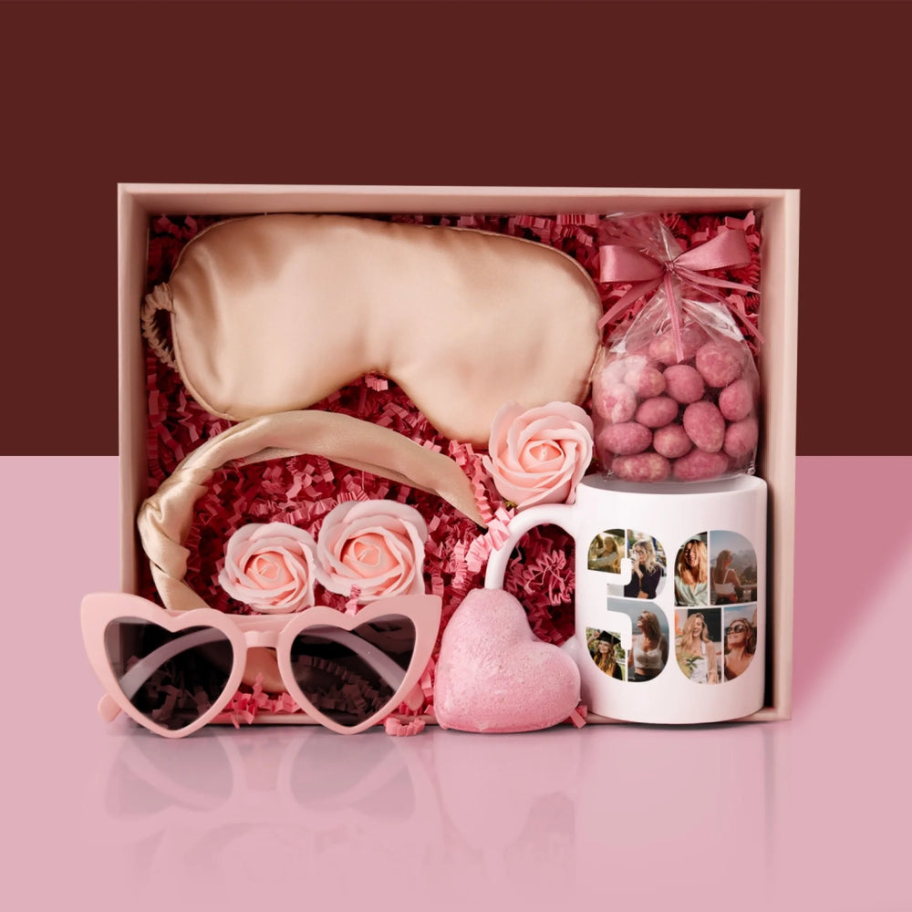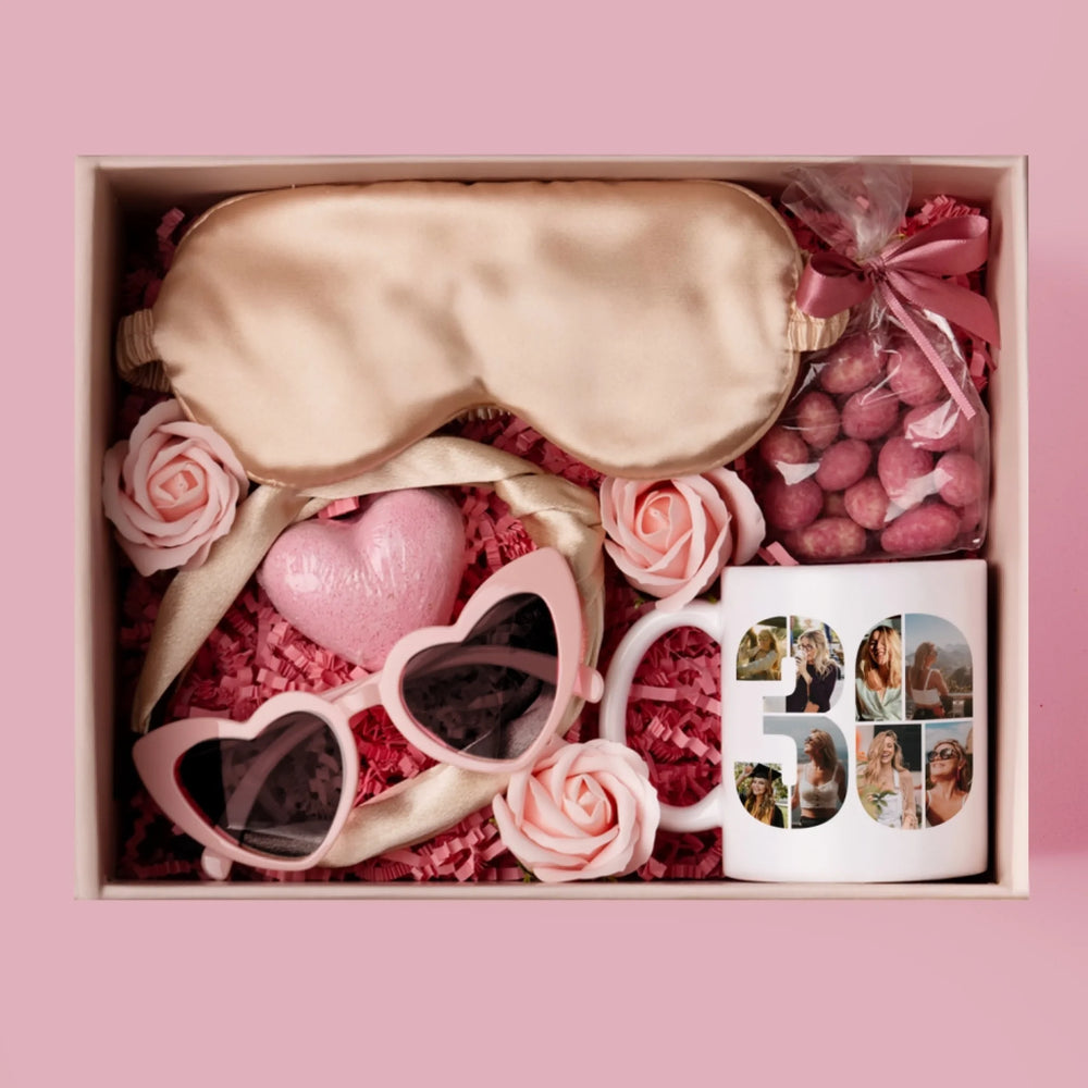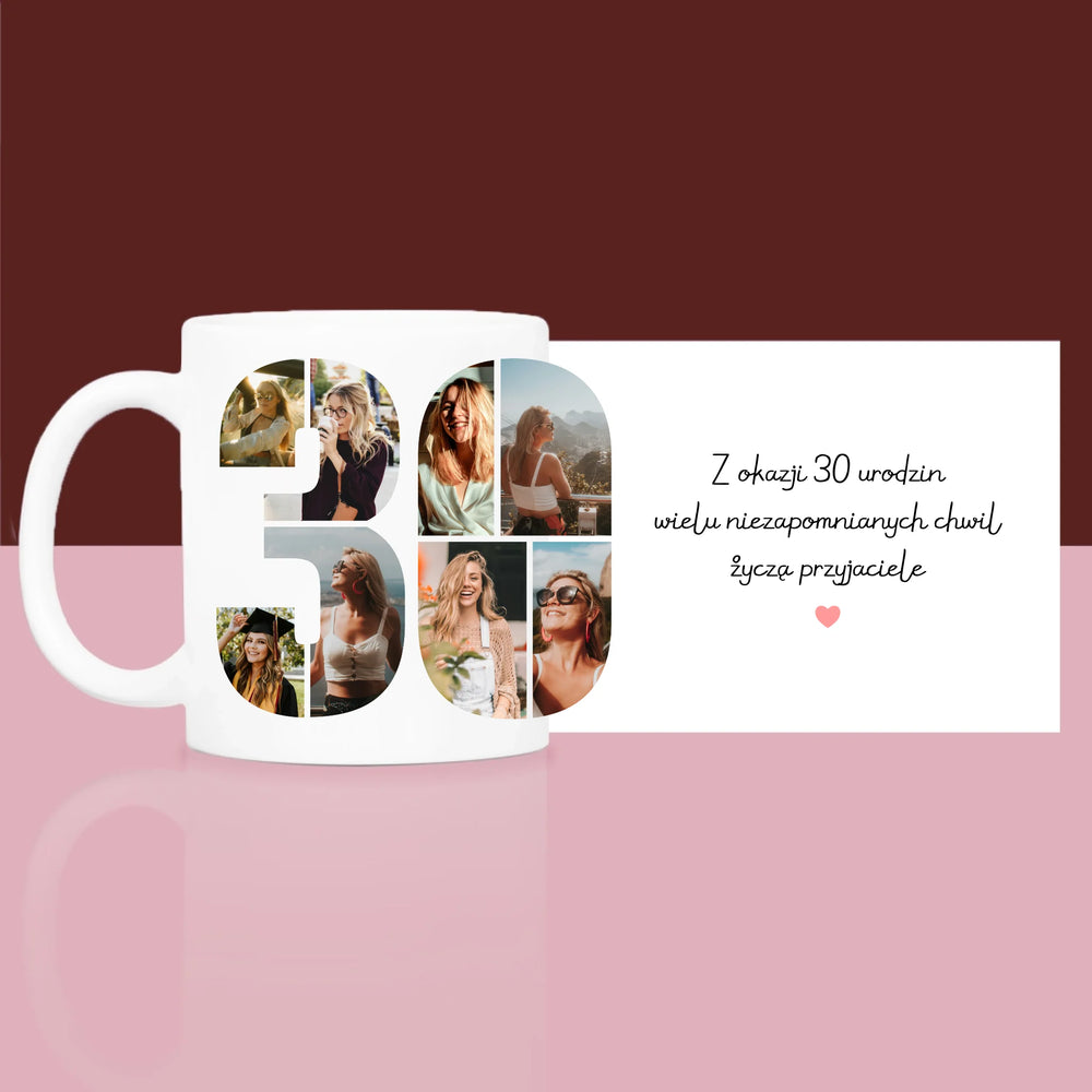 Fotokolaż: 30 Urodziny Życzenia - Zestaw prezentowy z kubkiem i satynową opaską
