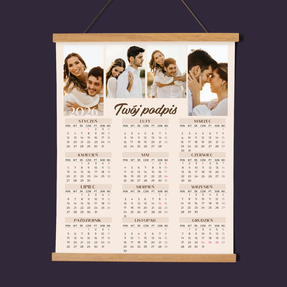 Fotokolaż: 4 Zdjęcia i Podpis - Kalendarz plakatowy z listwami