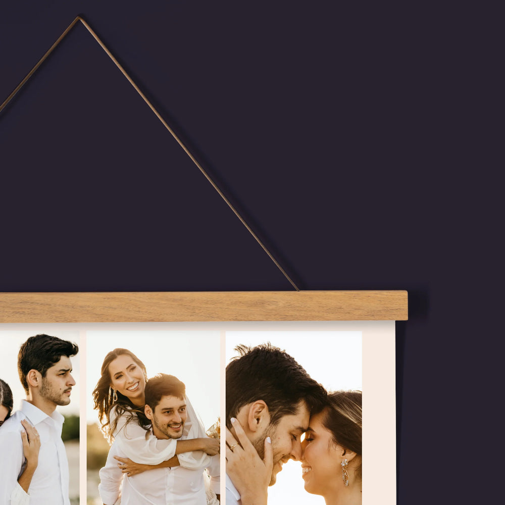 Fotokalendarz umieszczony w drewnianych listwach z wybranymi przez Ciebie zdjęciami.