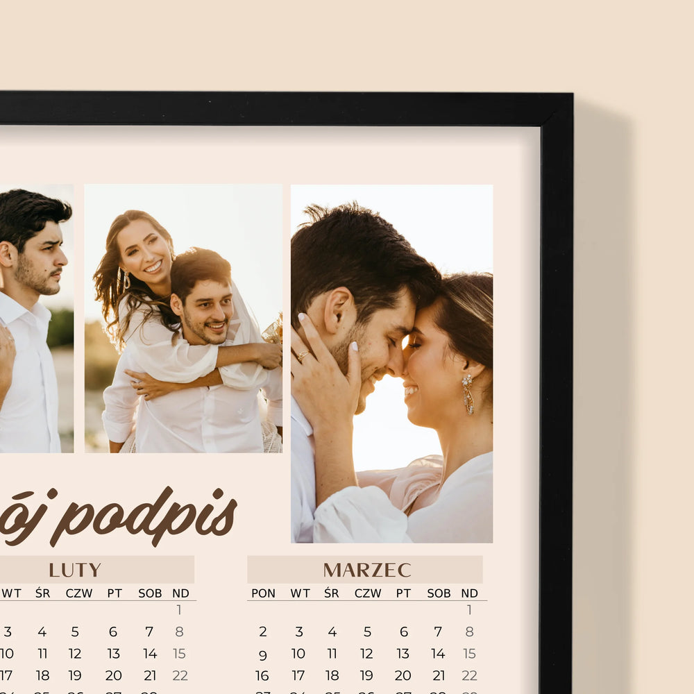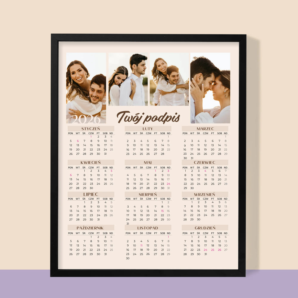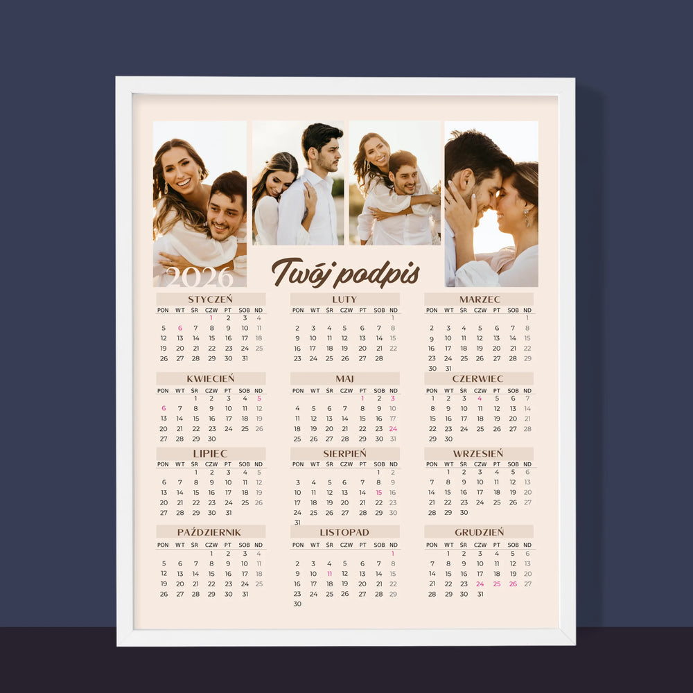 • Fotokalendarz oprawiony w ramkę z wybranymi przez Ciebie zdjęciami.