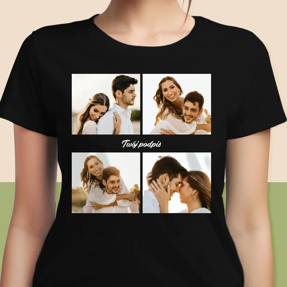 Fotokolaż: 4 Zdjęcia i Podpis - Personalizowana Koszulka Damska
