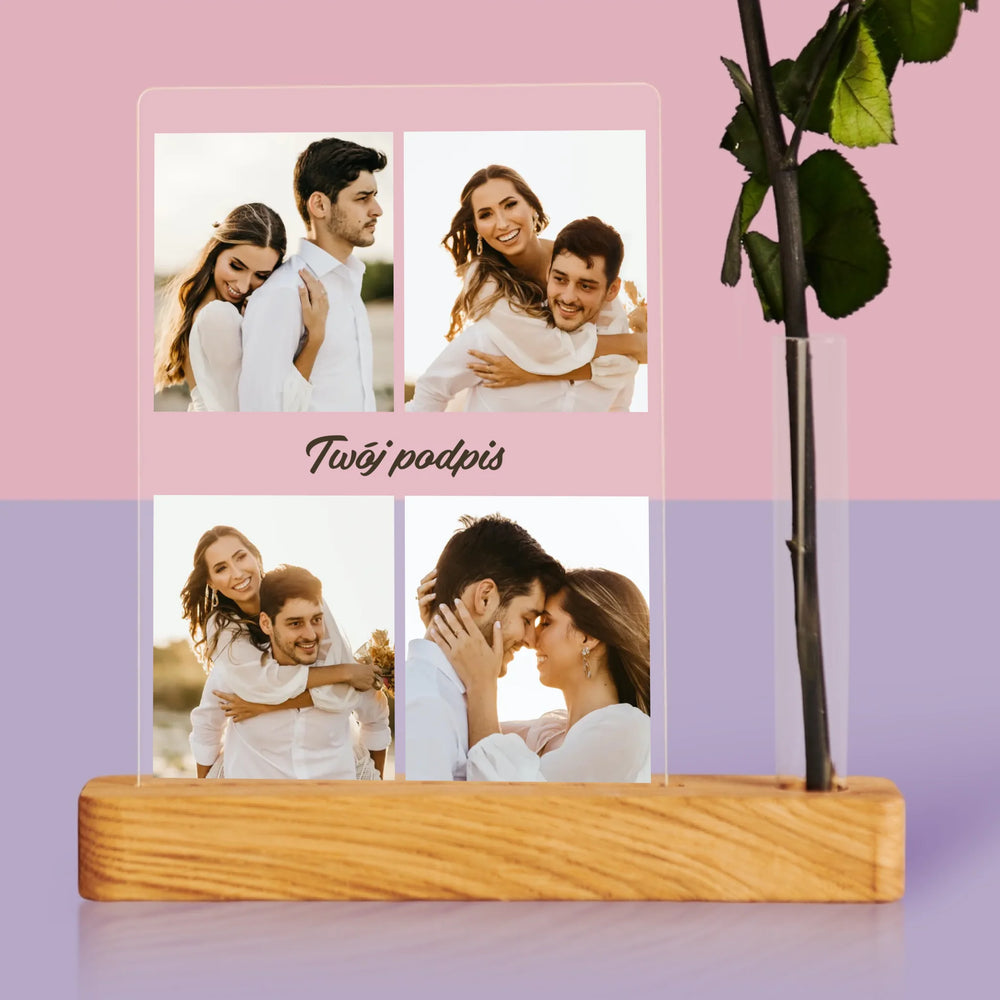 Fotokolaż: 4 Zdjęcia i Podpis - Wydruk na szkle akrylowym z różą