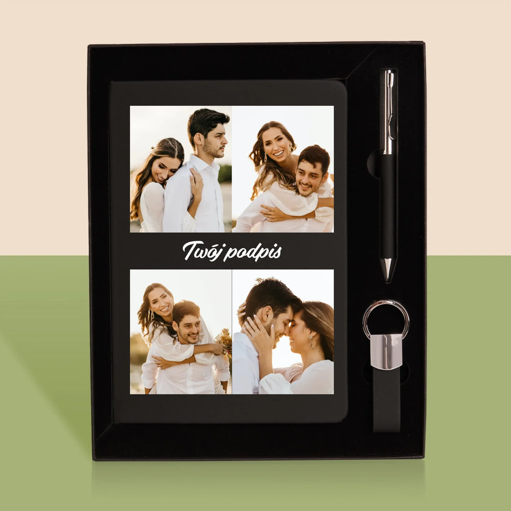 Fotokolaż: 4 Zdjęcia i Podpis - Zestaw z Notatnikiem