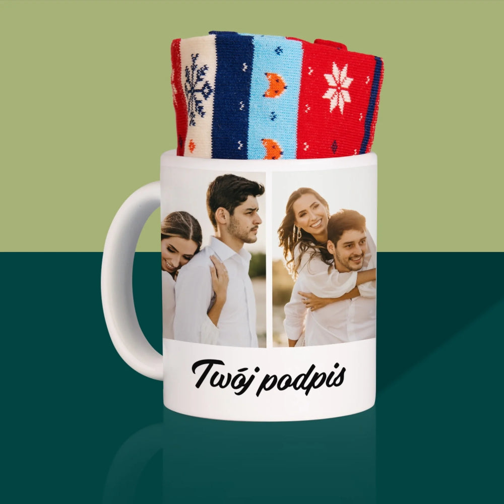 Fotokolaż: 4 Zdjęcia i Podpis - Zimowe skarpetki w kubku