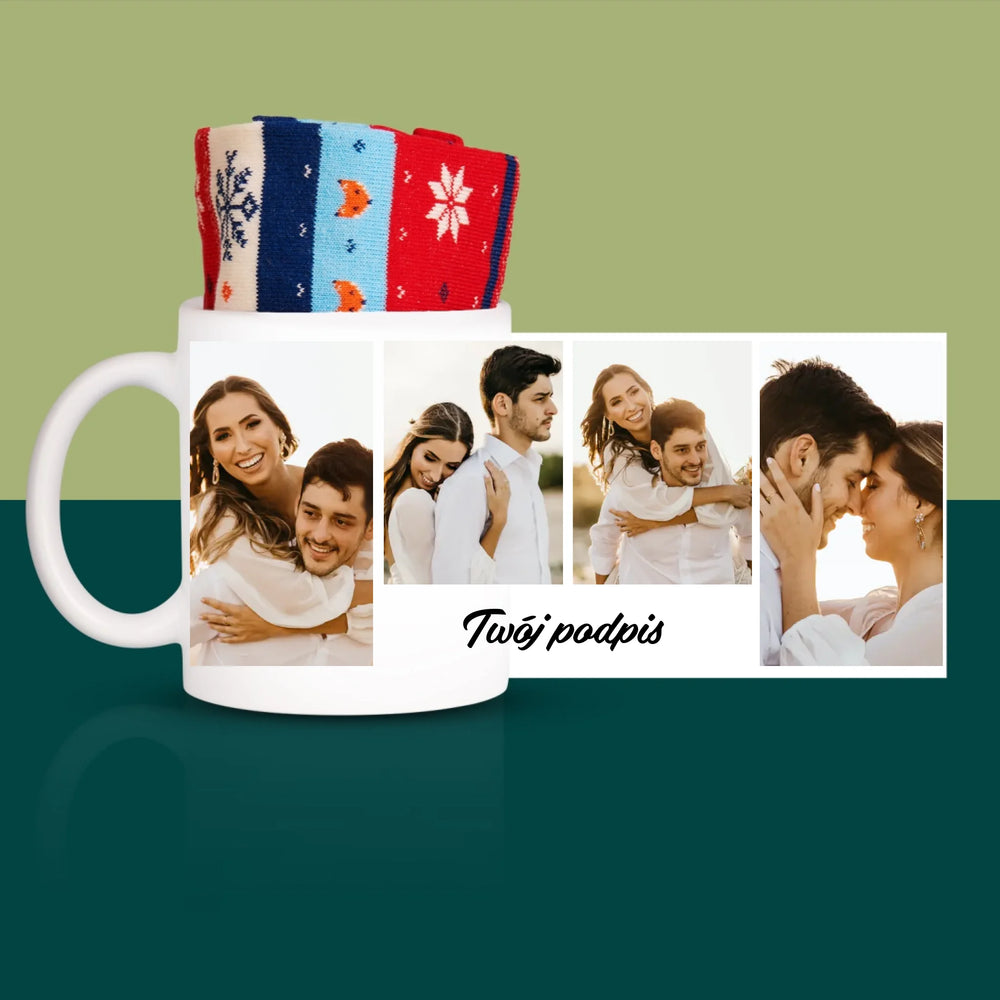 Fotokolaż: 4 Zdjęcia i Podpis - Zimowe Skarpetki w Kubku