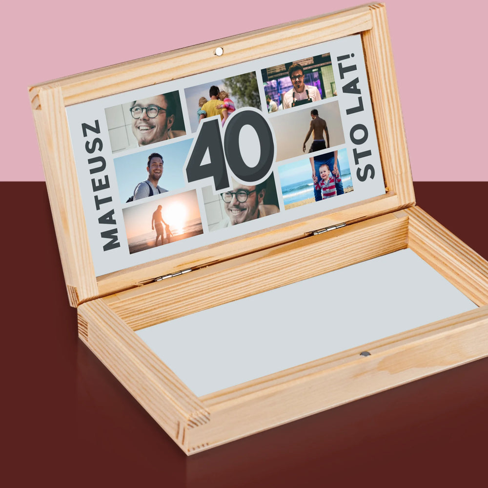 Fotokolaż: 40 Lat - Drewniane pudełko na pieniądze