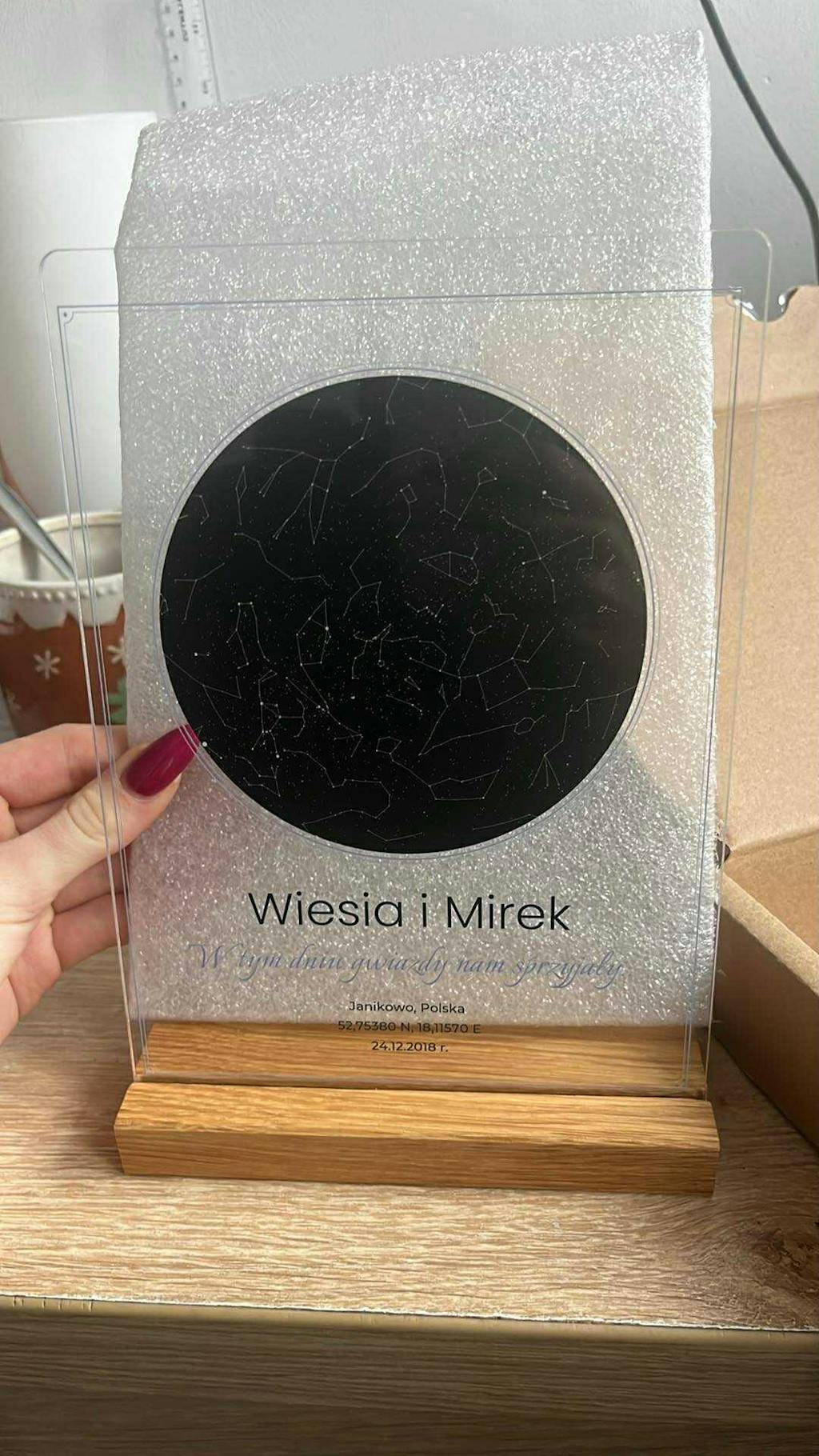 Wymiary szkła A5: 21 x 12,5 cm, wymiary drewnianej podstawki: 15 x 4,5 cm