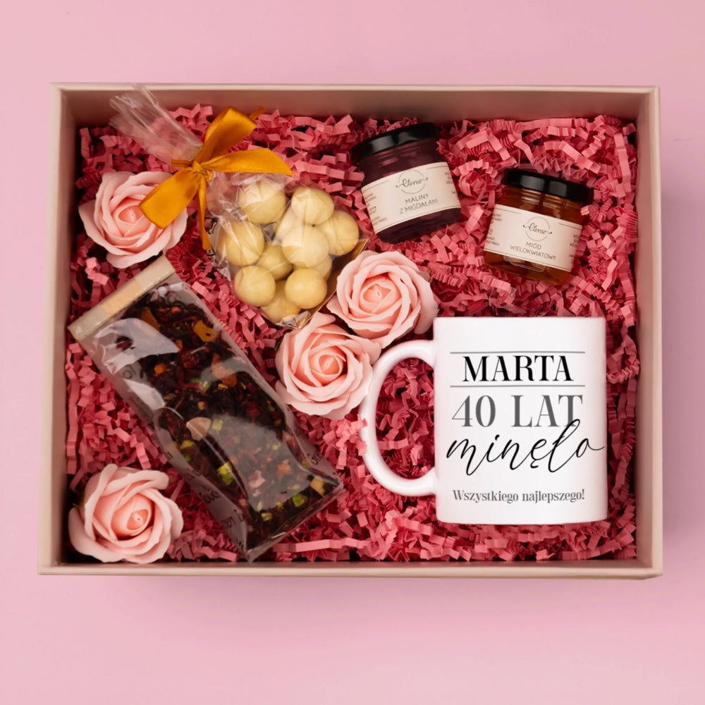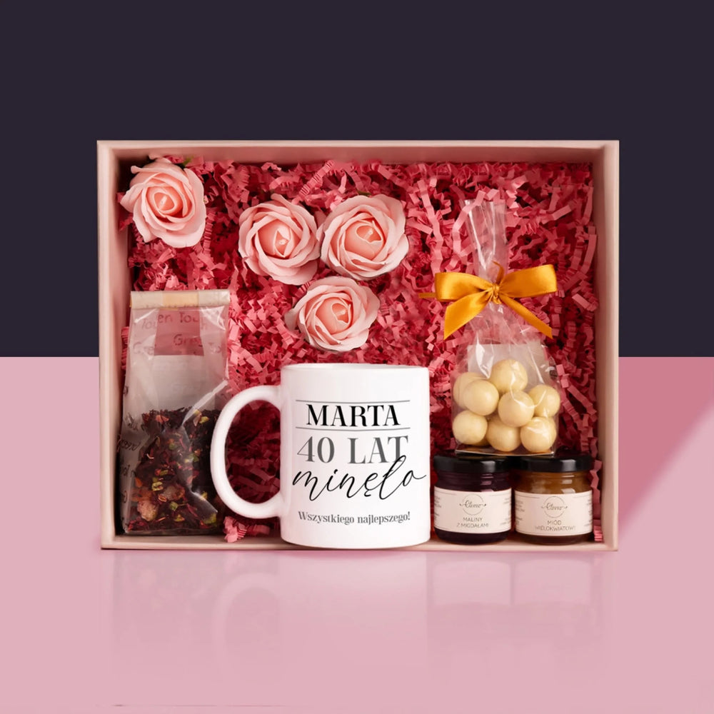 Fotokolaż: 40 Lat Minęło - Zestaw prezentowy z kubkiem, herbatą i słodkościami