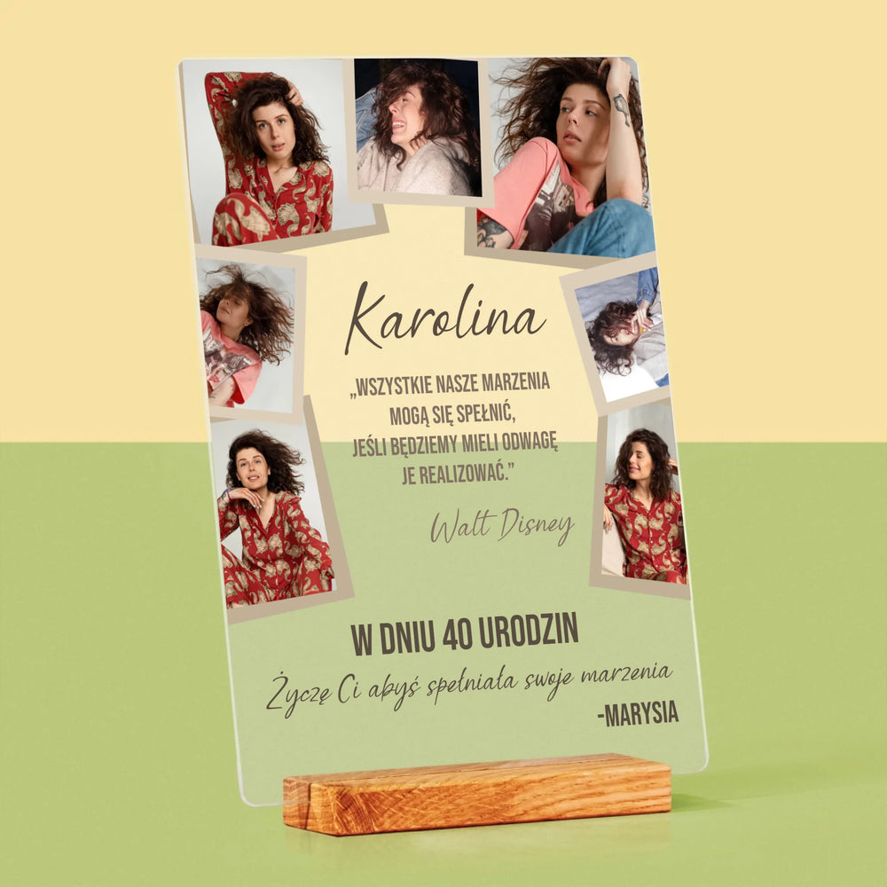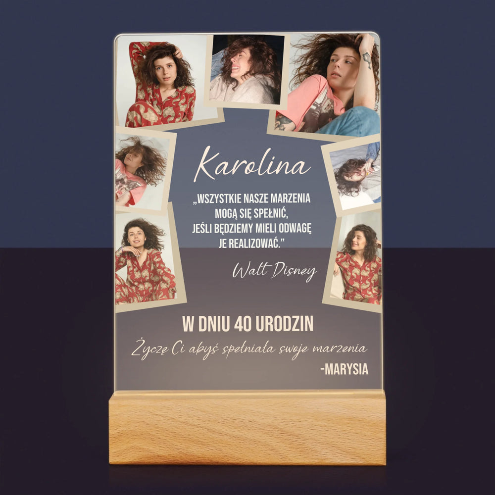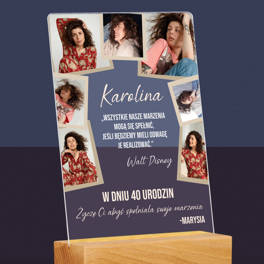 Fotokolaż: 40 Urodziny Spełniaj Marzenia - Wydruk na szkle akrylowym LED
