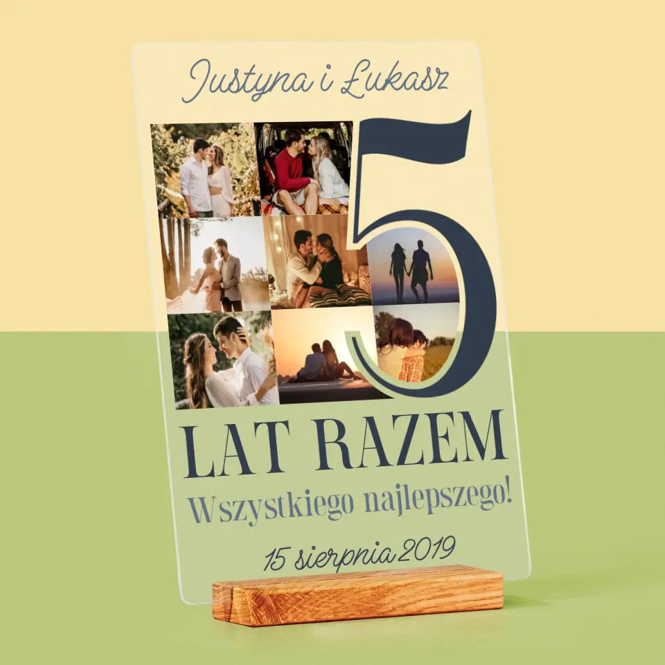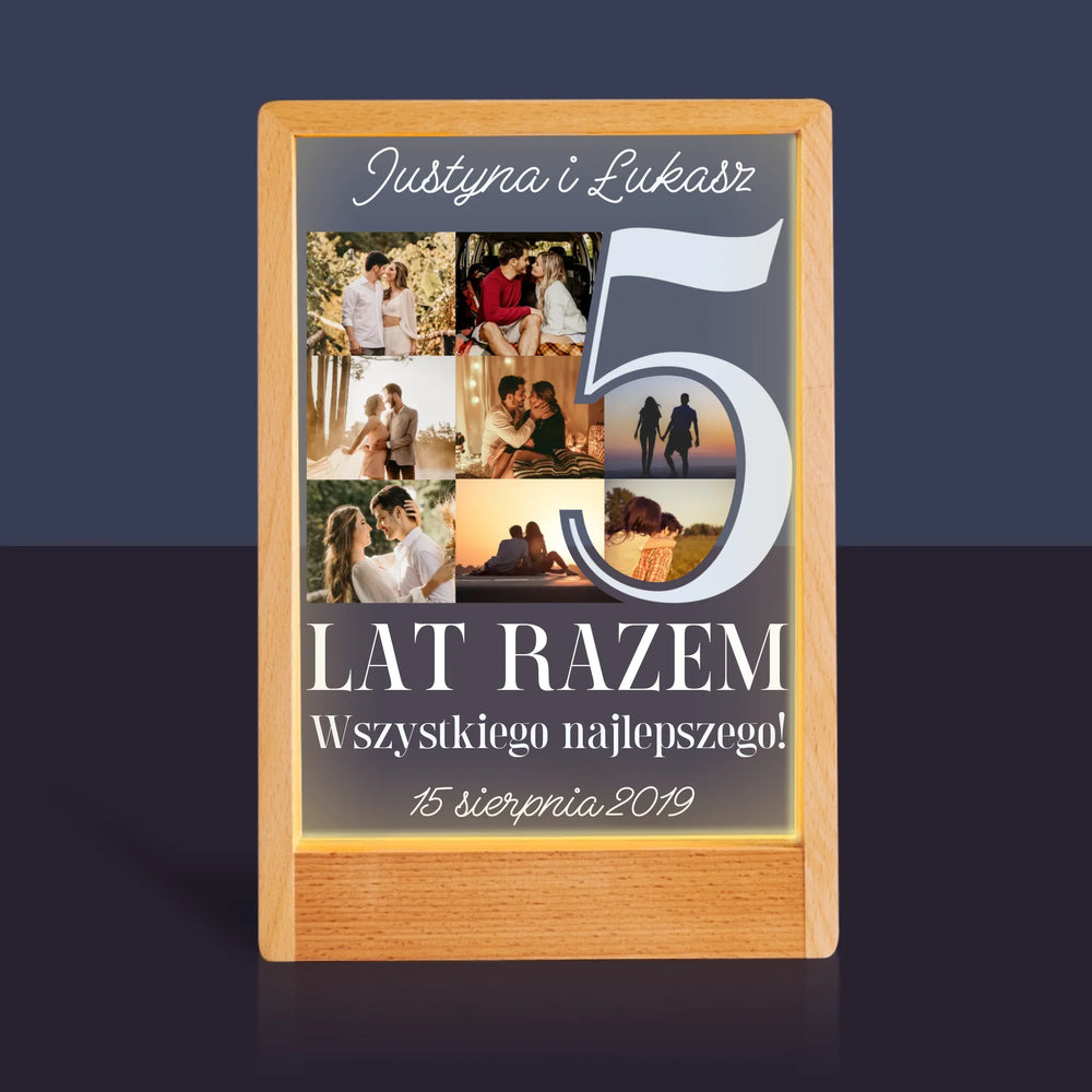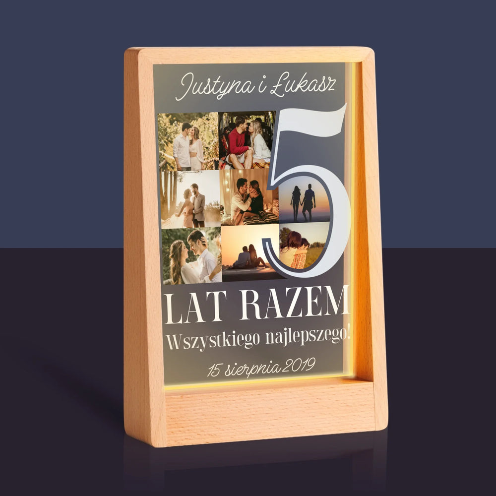 Fotokolaż: 5 Lat Razem - Wydruk na szkle akrylowym w ramce LED