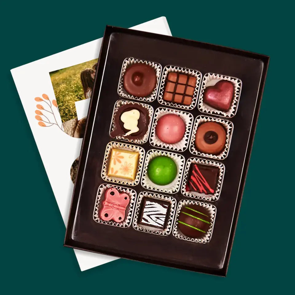 Pyszne praliny z belgijskiej czekolady w eleganckim pudełku z wybraną przez Ciebie personalizacją.