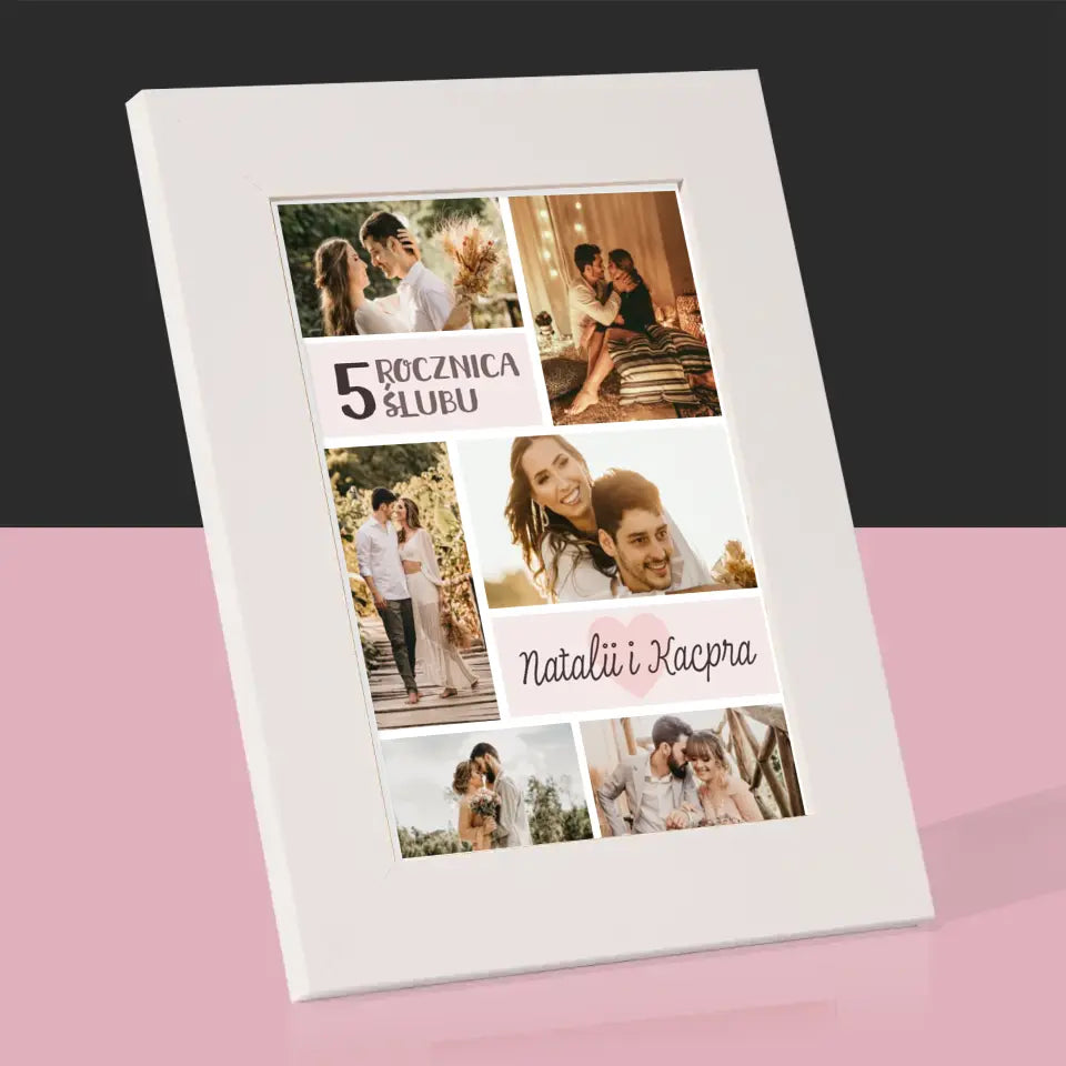 Fotokolaż: 5 Rocznica Ślubu - Ramka na Zdjęcia z Nadrukiem