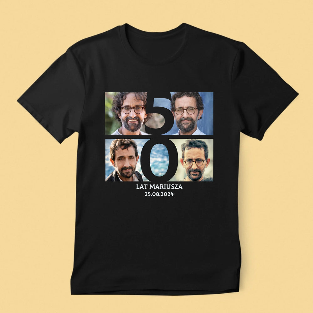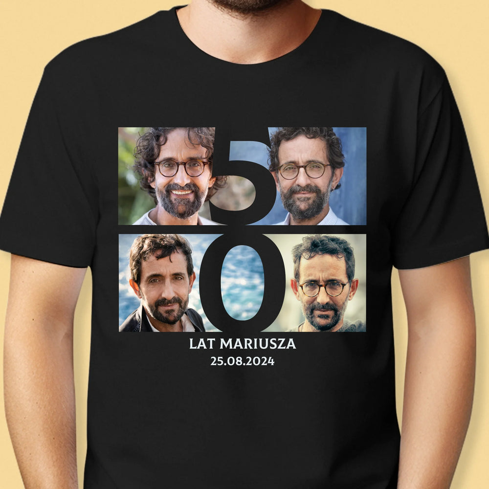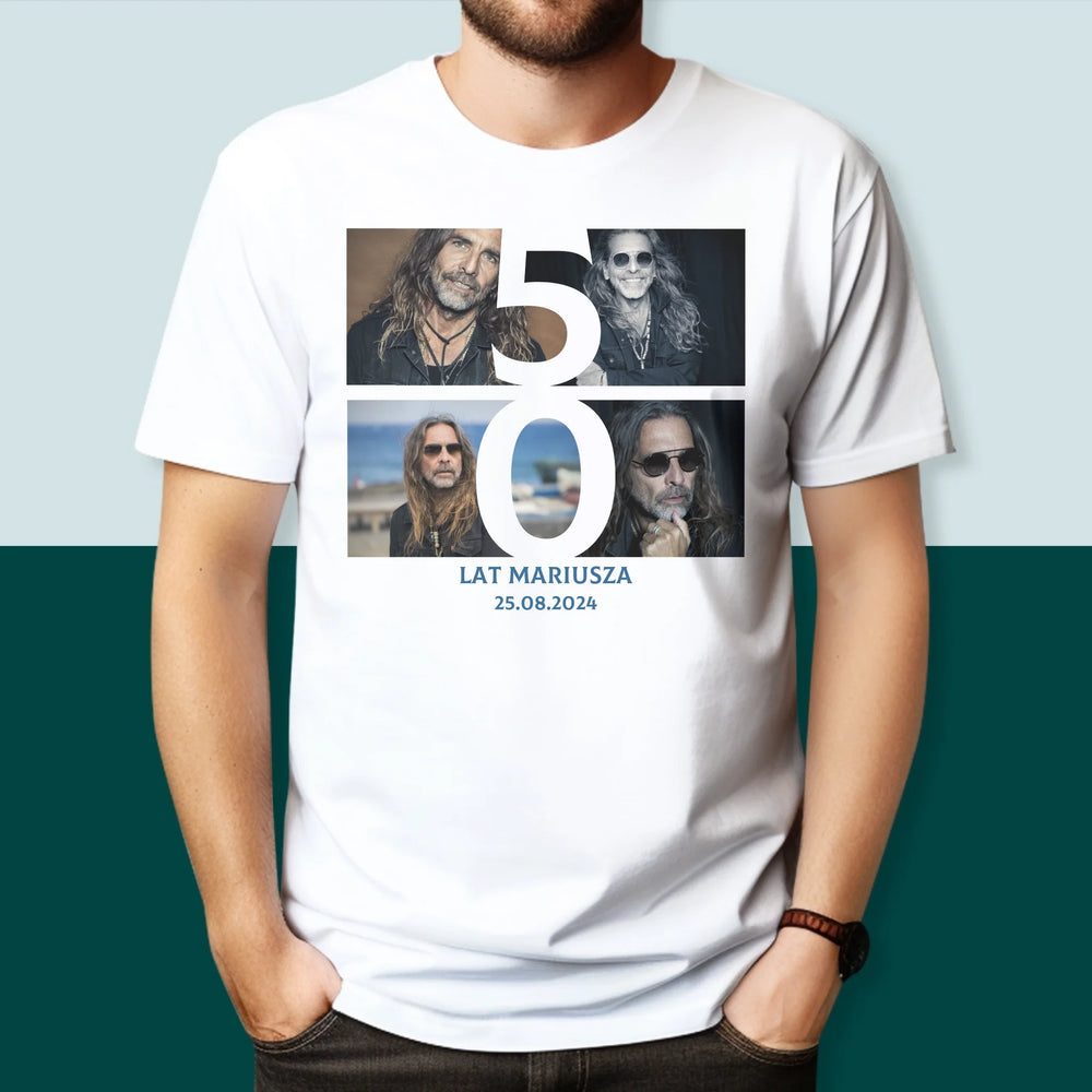 Fotokolaż: 50 Lat Cyfra Zdjęcia - Personalizowana Koszulka Męska