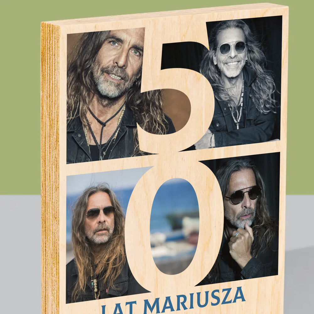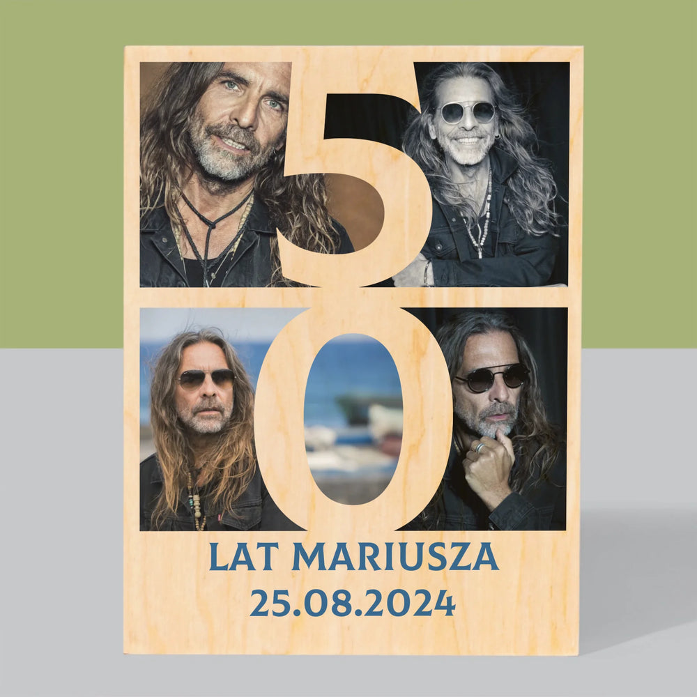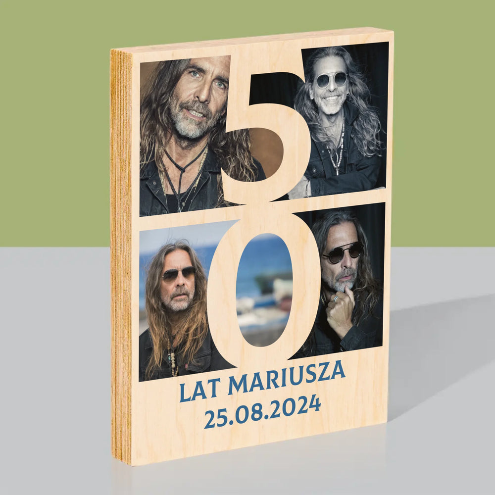 Fotokolaż: 50 Lat Cyfra Zdjęcia - Wydruk na drewnie - Pion