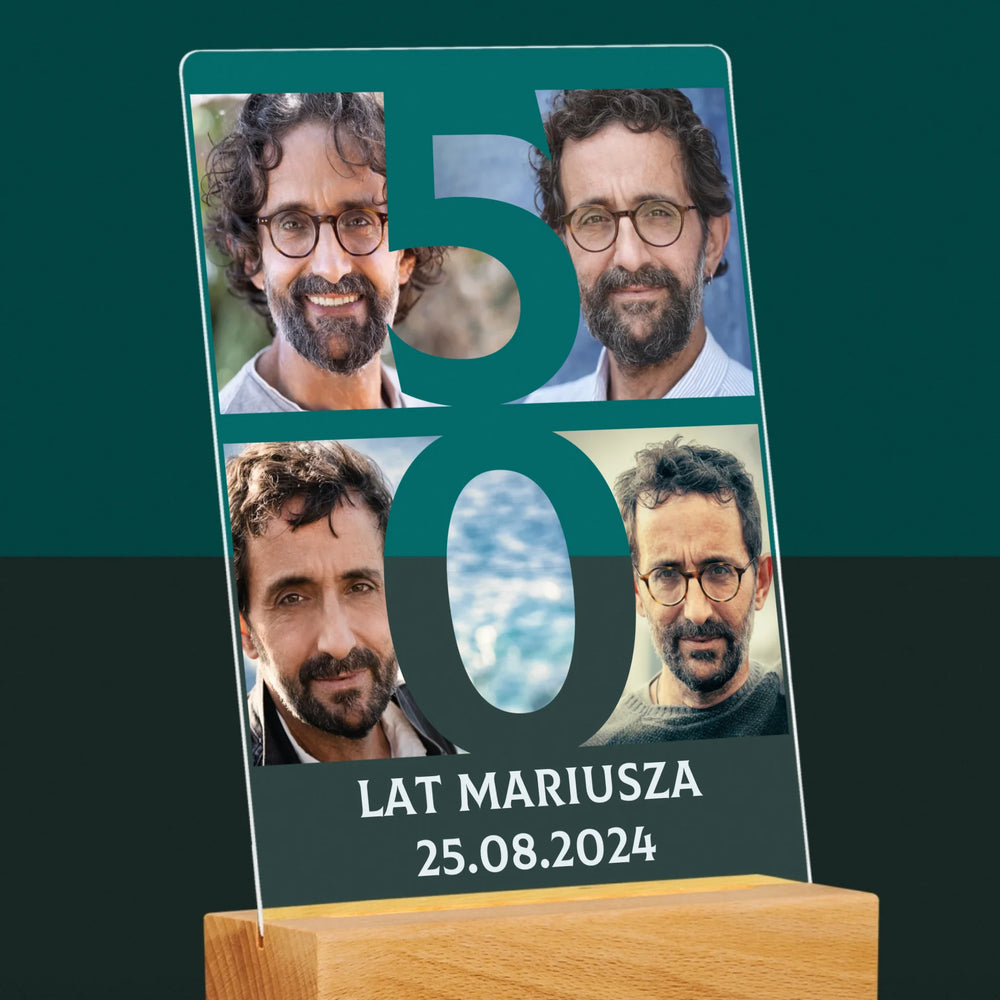 Fotokolaż: 50 Lat Cyfra Zdjęcia - Wydruk na szkle akrylowym LED
