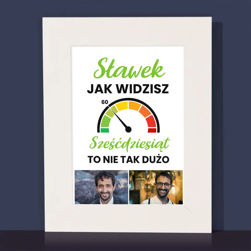 Fotokolaż: 60 Licznik - Ramka na Zdjęcia z Nadrukiem