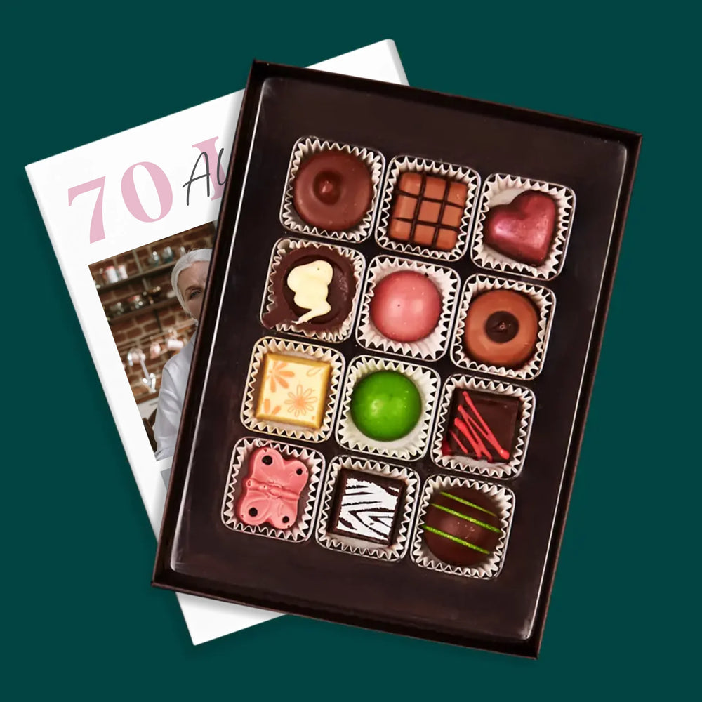 Pyszne praliny z belgijskiej czekolady w eleganckim pudełku z wybraną przez Ciebie personalizacją.