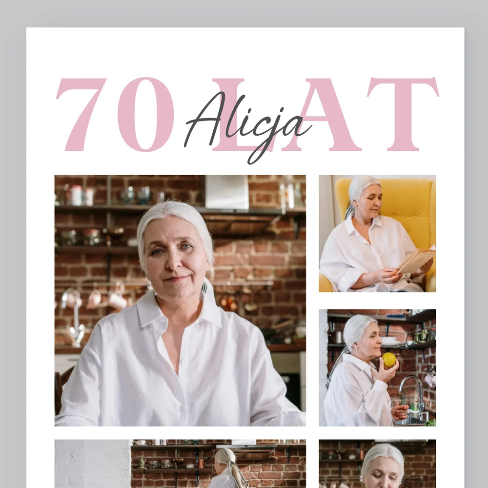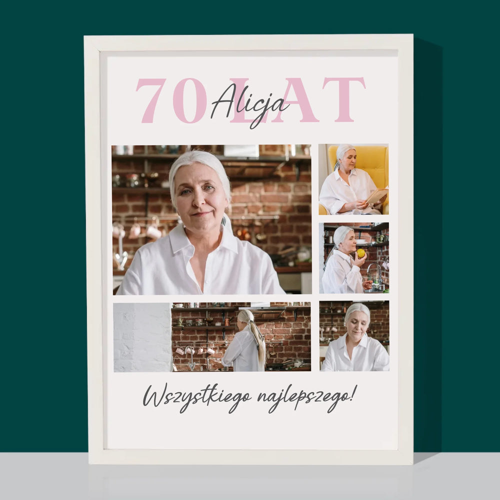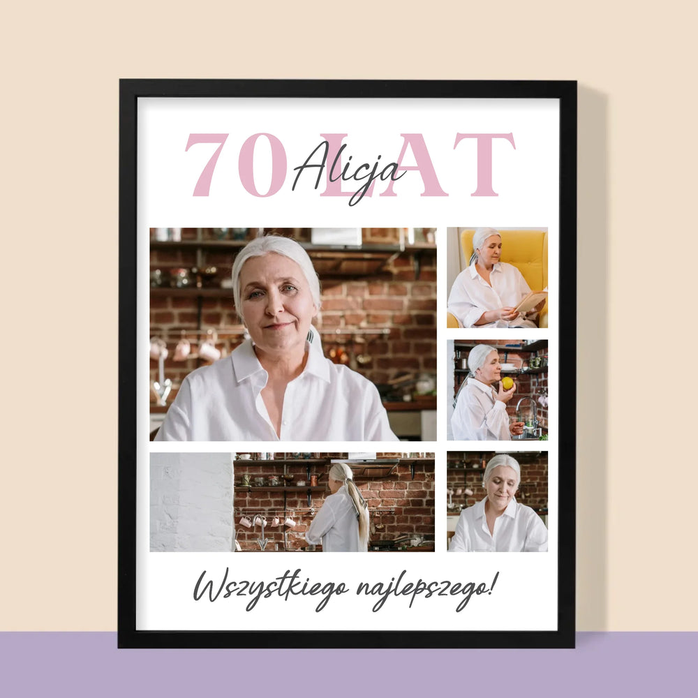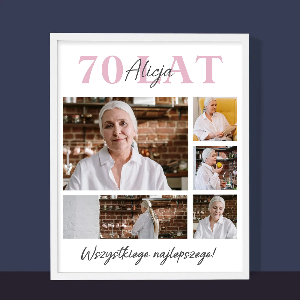 Fotokolaż: 70 Lat Wszystkiego Najlepszego - Wydruk obramowany - Pion