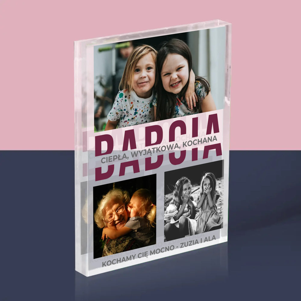 Fotokolaż: Babcia Cechy Charakteru - Blok Akrylowy z Nadrukiem